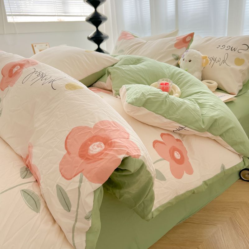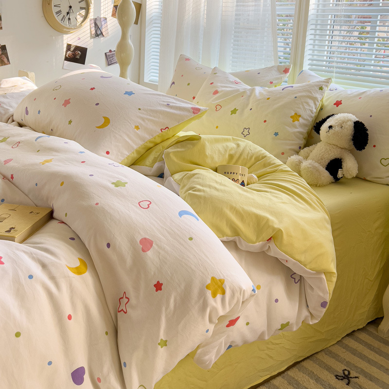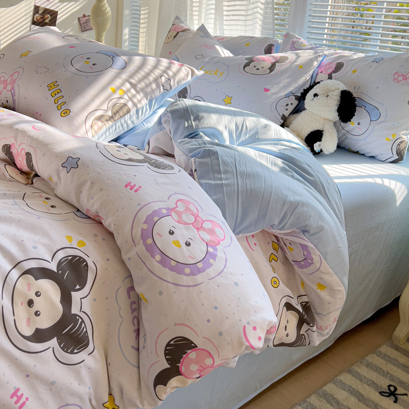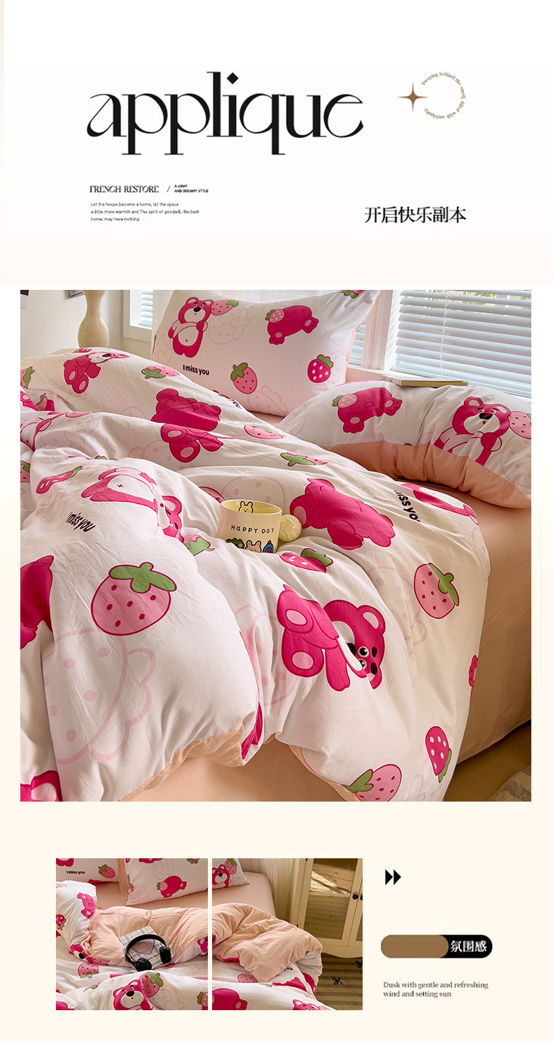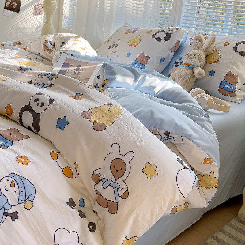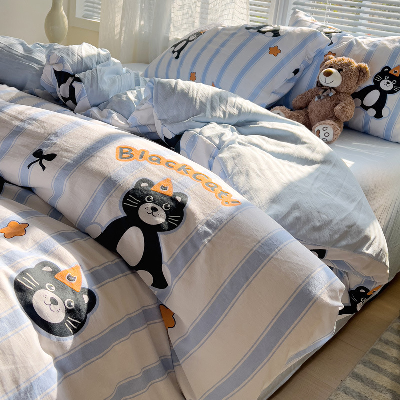 만화 씻은 코튼 침대 4 조각 세트 2025 새로운 봄과 여름 퀼트 커버 귀여운 침대 시트 남자 침대 모자 3 피스 세트