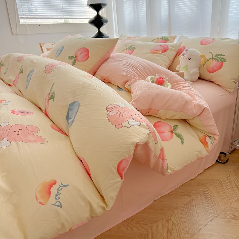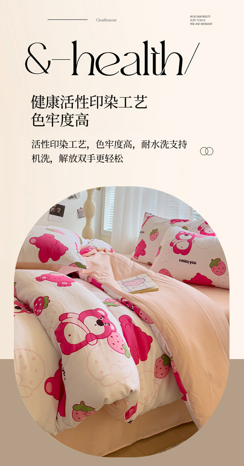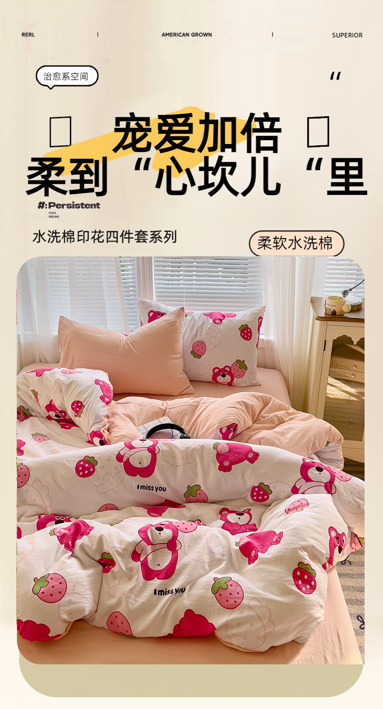 만화 씻은 코튼 침대 4 조각 세트 2025 새로운 봄과 여름 퀼트 커버 귀여운 침대 시트 남자 침대 모자 3 피스 세트스토어 가기