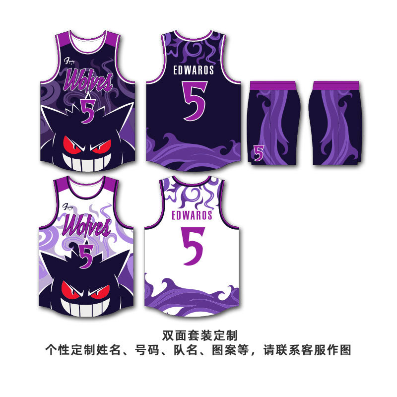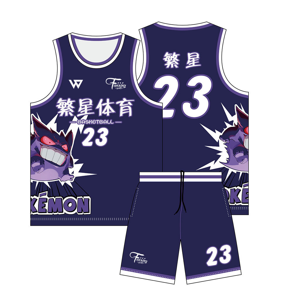 2025 새로운 농구 유니폼 디지털 사용자 정의 만화 애니메이션 Gengar 피카추 유니폼 남성과 여성 미국 저지스토어 가기