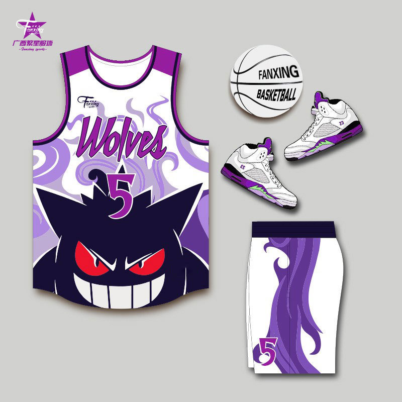 2025 새로운 농구 유니폼 디지털 사용자 정의 만화 애니메이션 Gengar 피카추 유니폼 남성과 여성 미국 저지