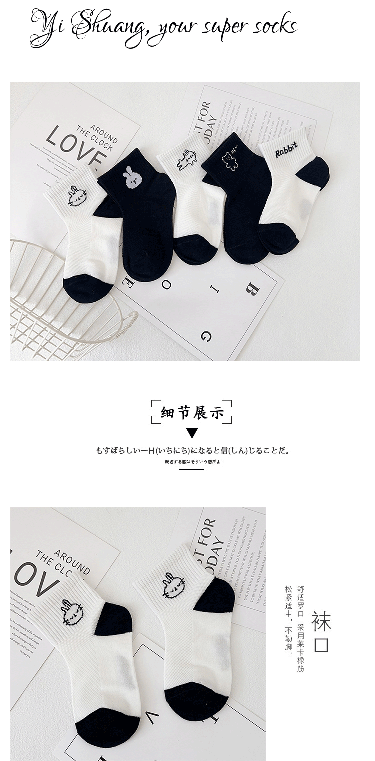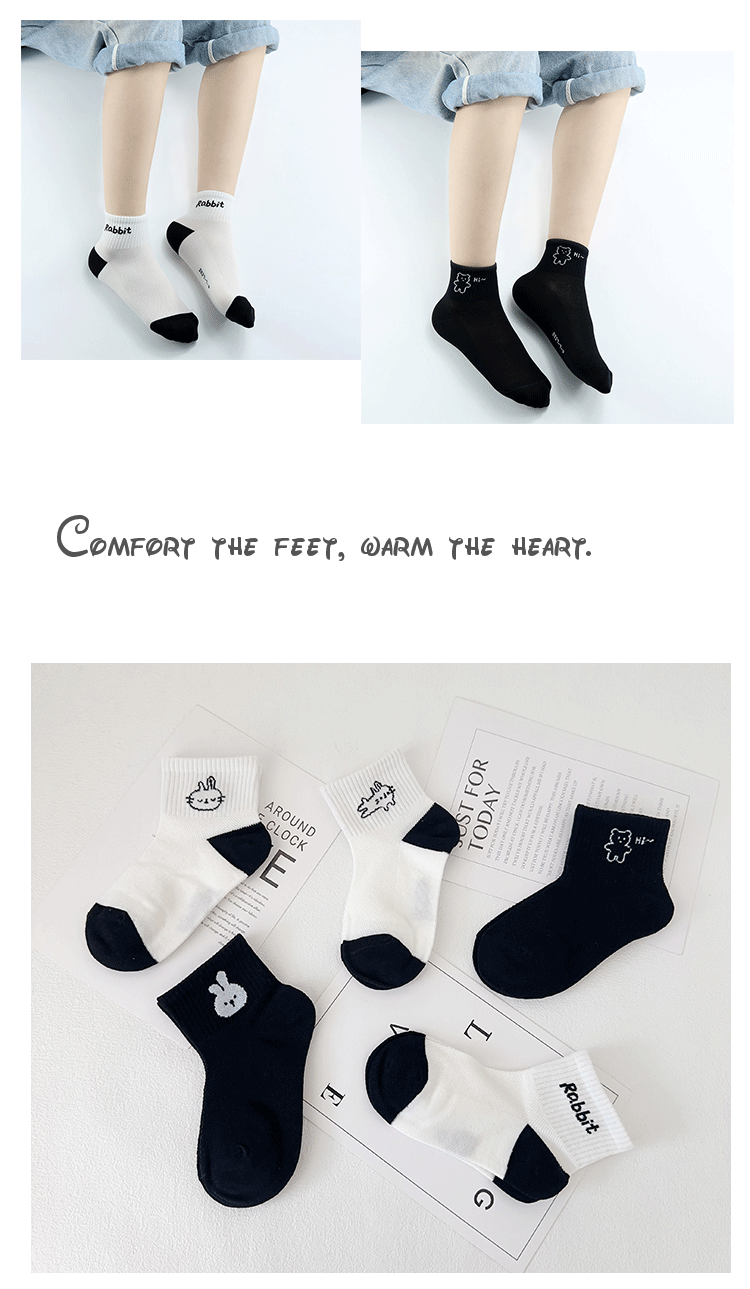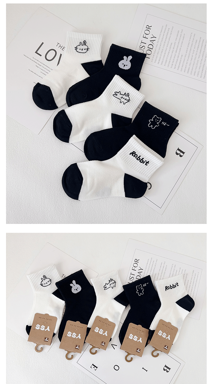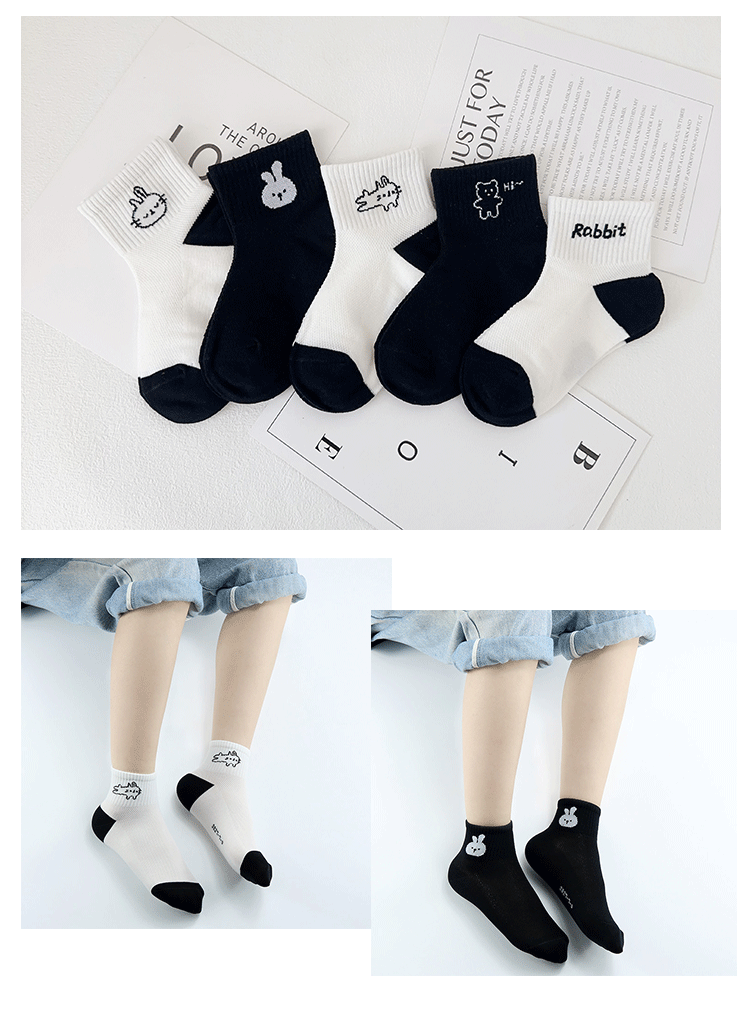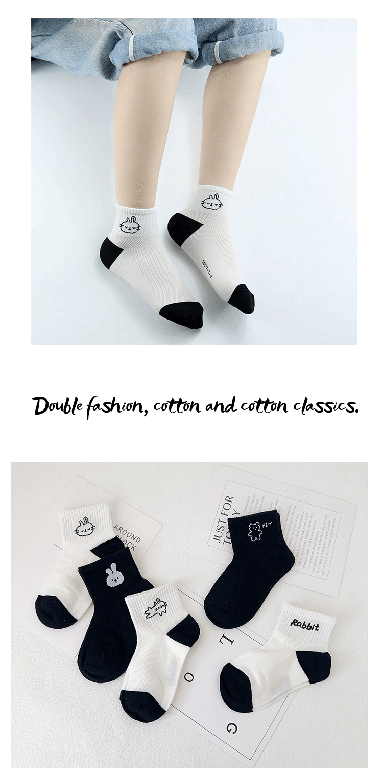 이순신 한 쌍의 어린이 양말 여름 새로운 메쉬 통기성 만화 토끼 양말은면 흑백 소녀 유행 양말을 빗어스토어 가기
