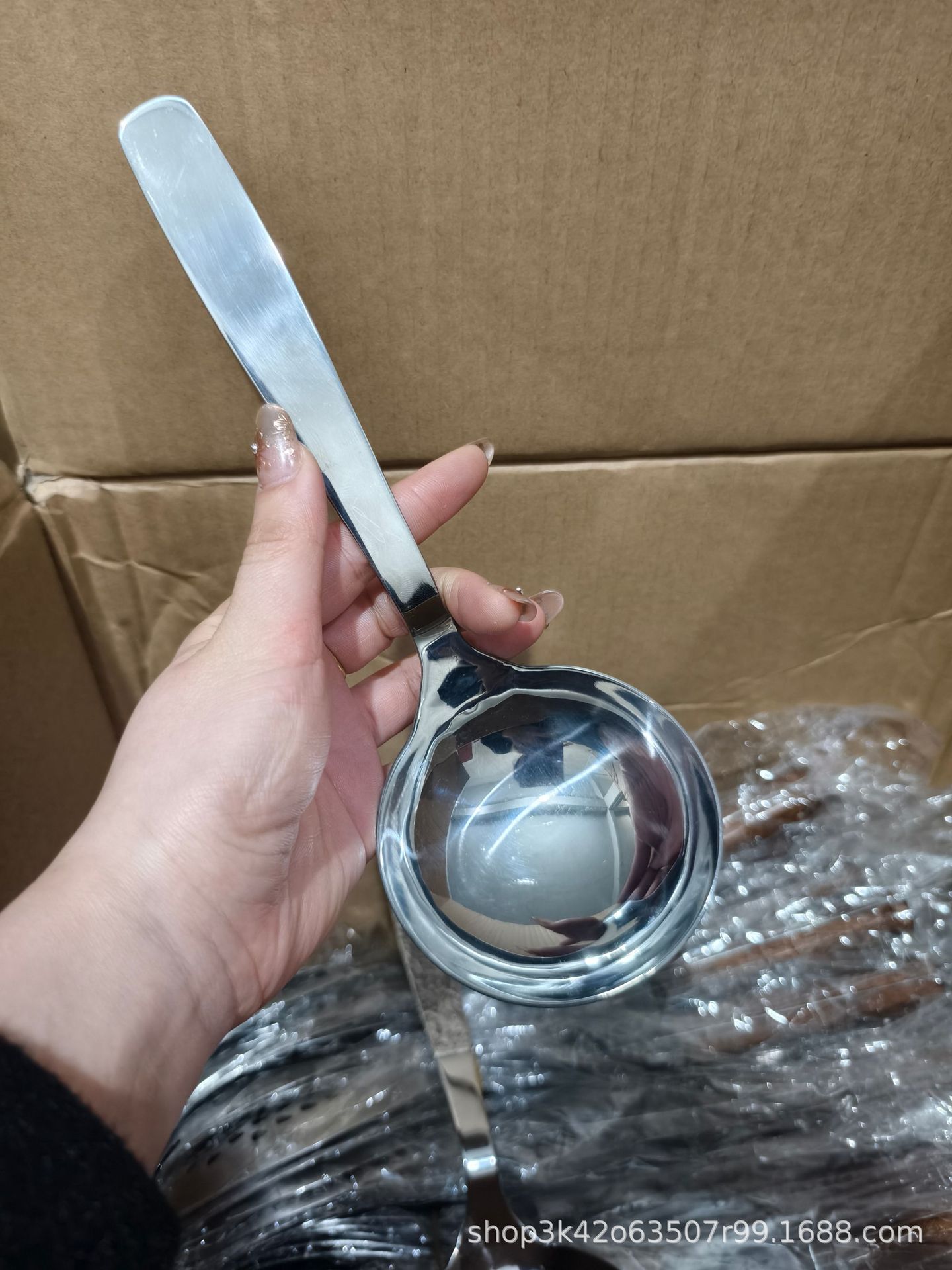 • 304 스테인리스 손잡이가 긴 대형 원형 스푼 [길이 24.5cm, 폭 9.2cm]