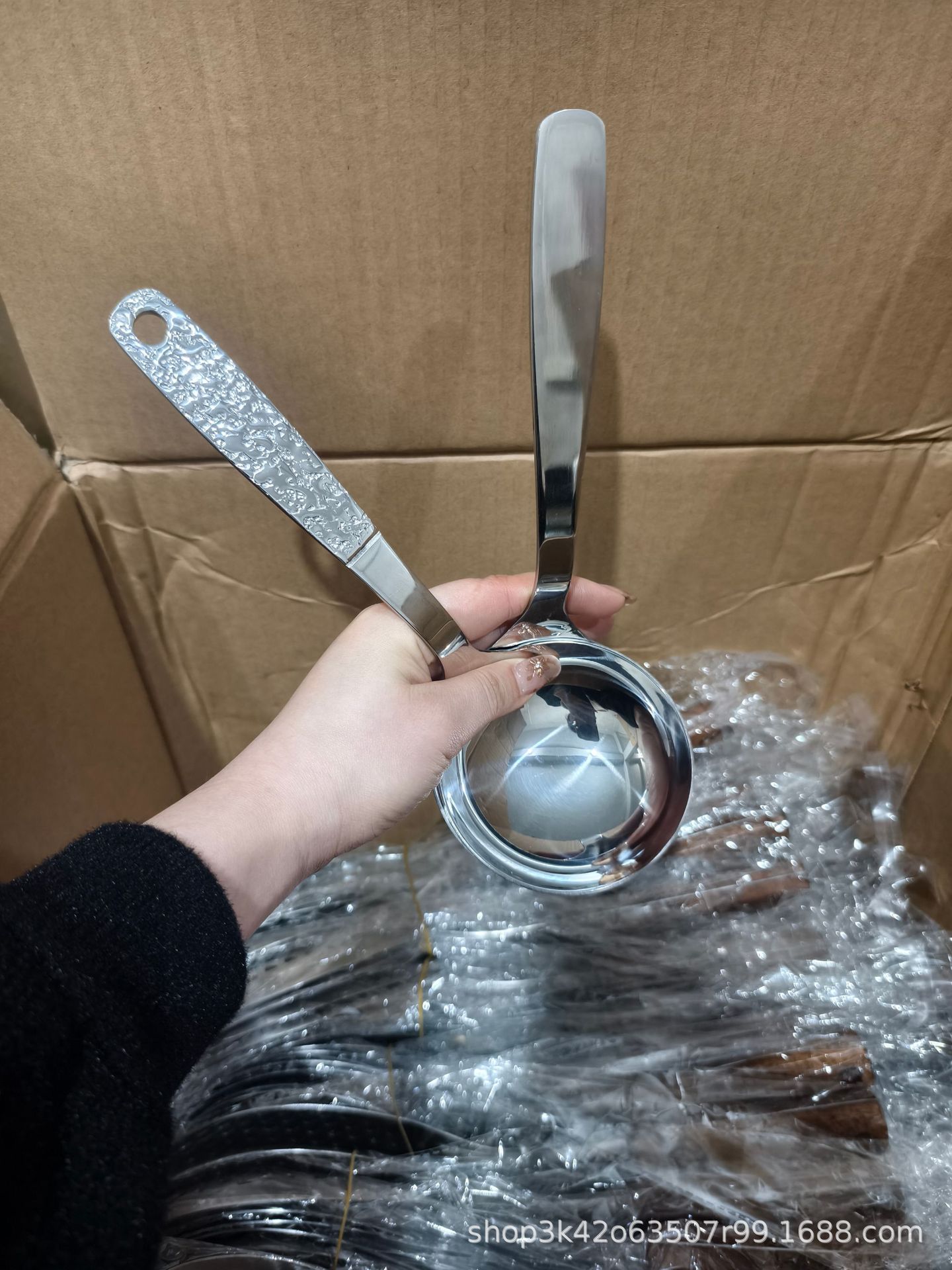 • 304 스테인리스 해머 패턴 손잡이가 긴 대형 원형 스푼 [길이 24.5cm, 폭 9.2cm]