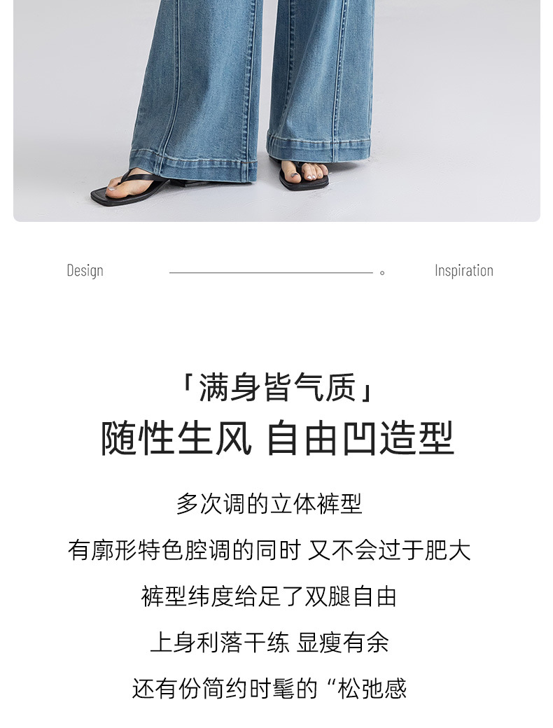 여성을 위한 맞춤형 패셔너블한 하이엔드 와이드 레그 청바지, 2025 봄 신상 하이웨이스트 루즈 플레어 바닥 길이 팬츠