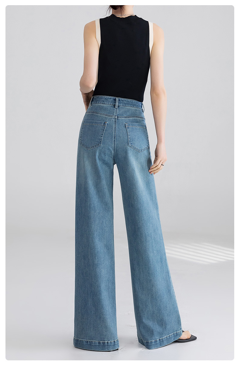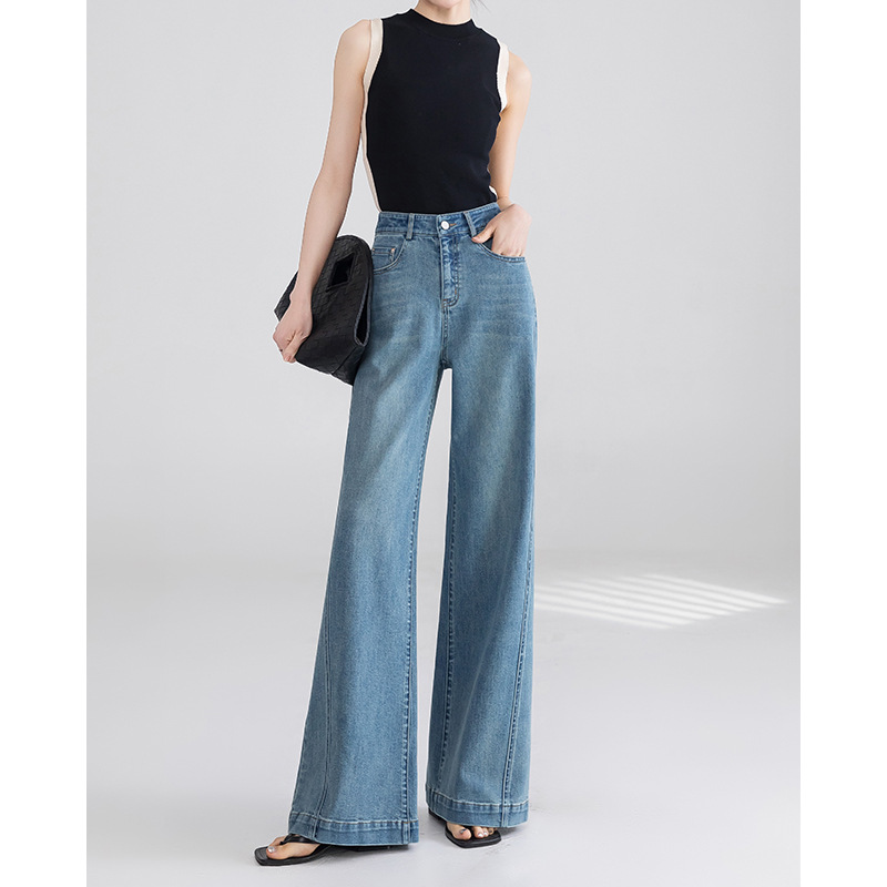 여성을 위한 맞춤형 패셔너블한 하이엔드 와이드 레그 청바지, 2025 봄 신상 하이웨이스트 루즈 플레어 바닥 길이 팬츠스토어 가기