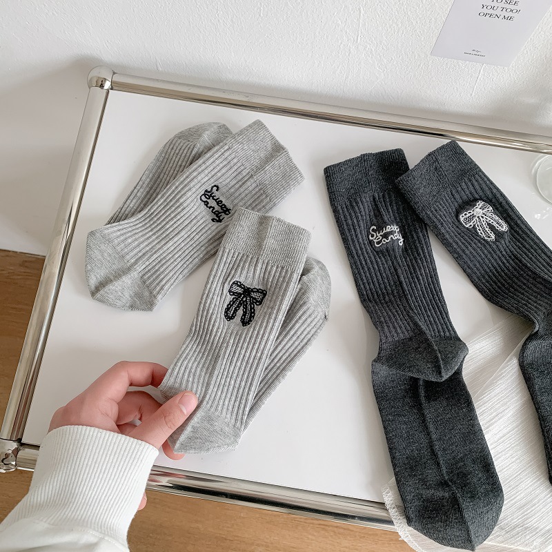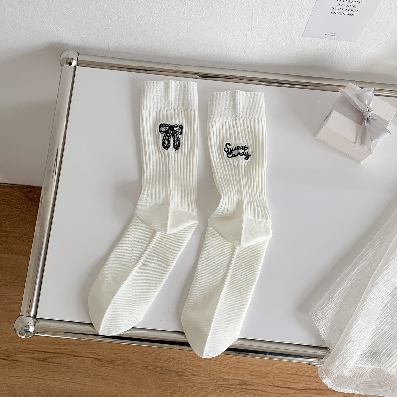 봄과 여름 새로운 양말 여성용 미드 튜브 양말 뒤꿈치 편지 활 AB 비대칭 라라 양말 면화