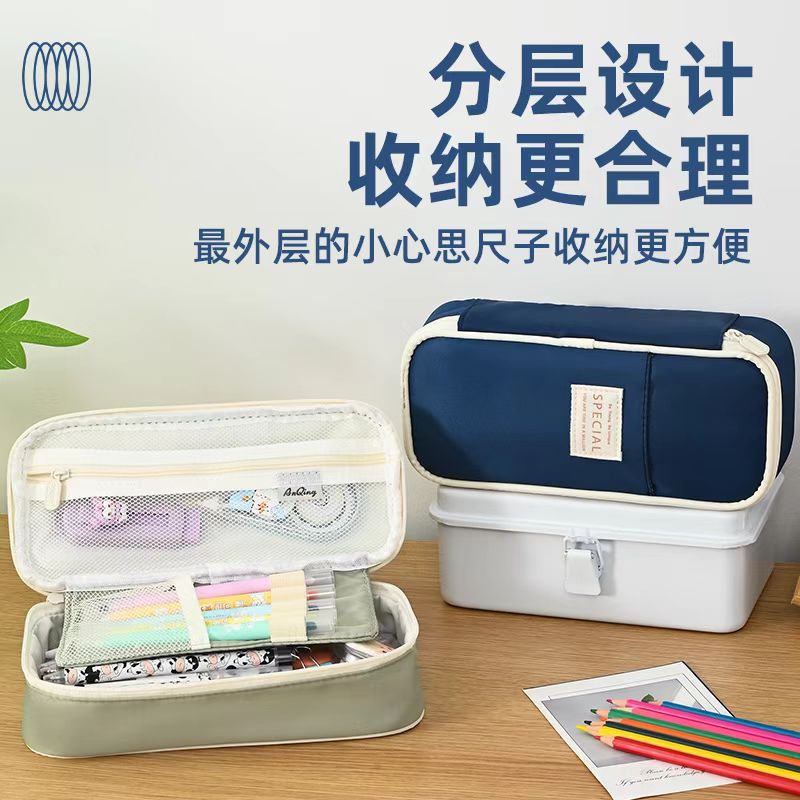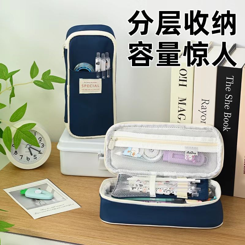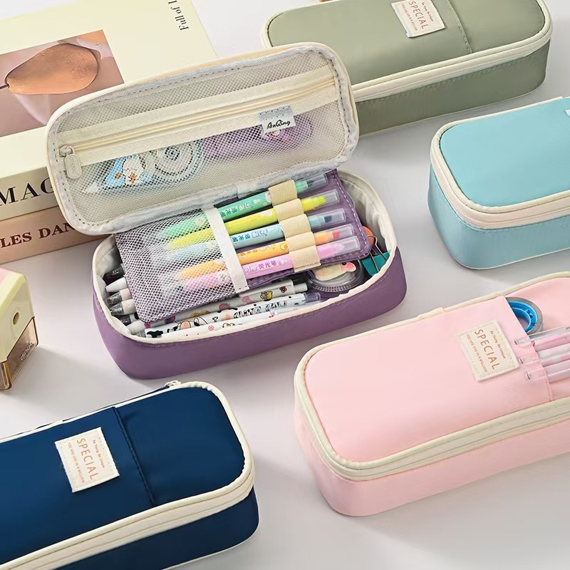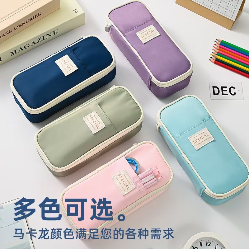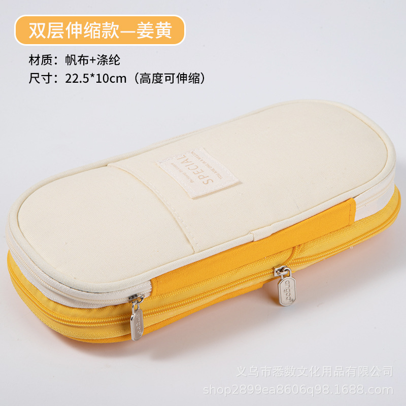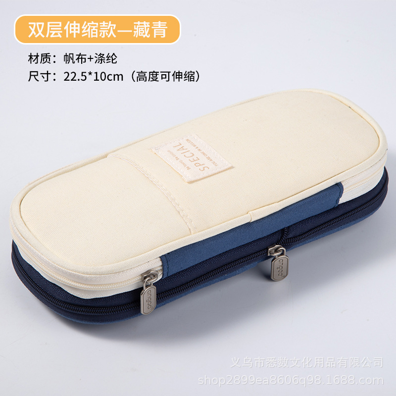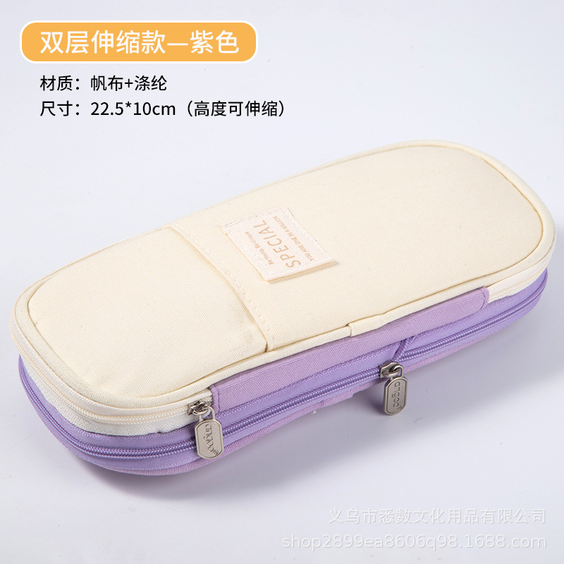 아마존 컬러 매칭 틸트 스트레칭 가능한 문구 가방 학생 다기능 더블 지퍼 간단한 가변 대용량 연필 케이스스토어 가기