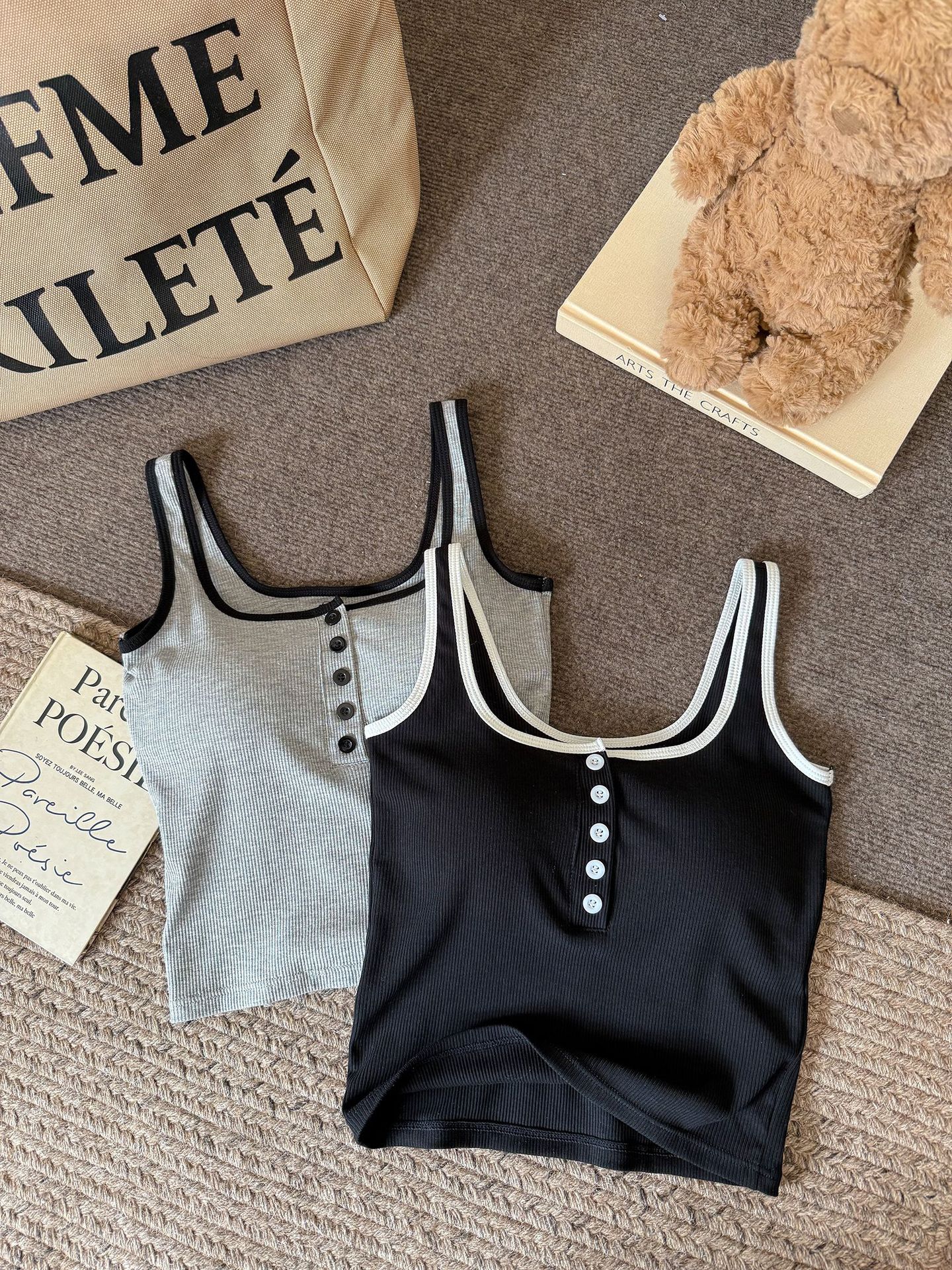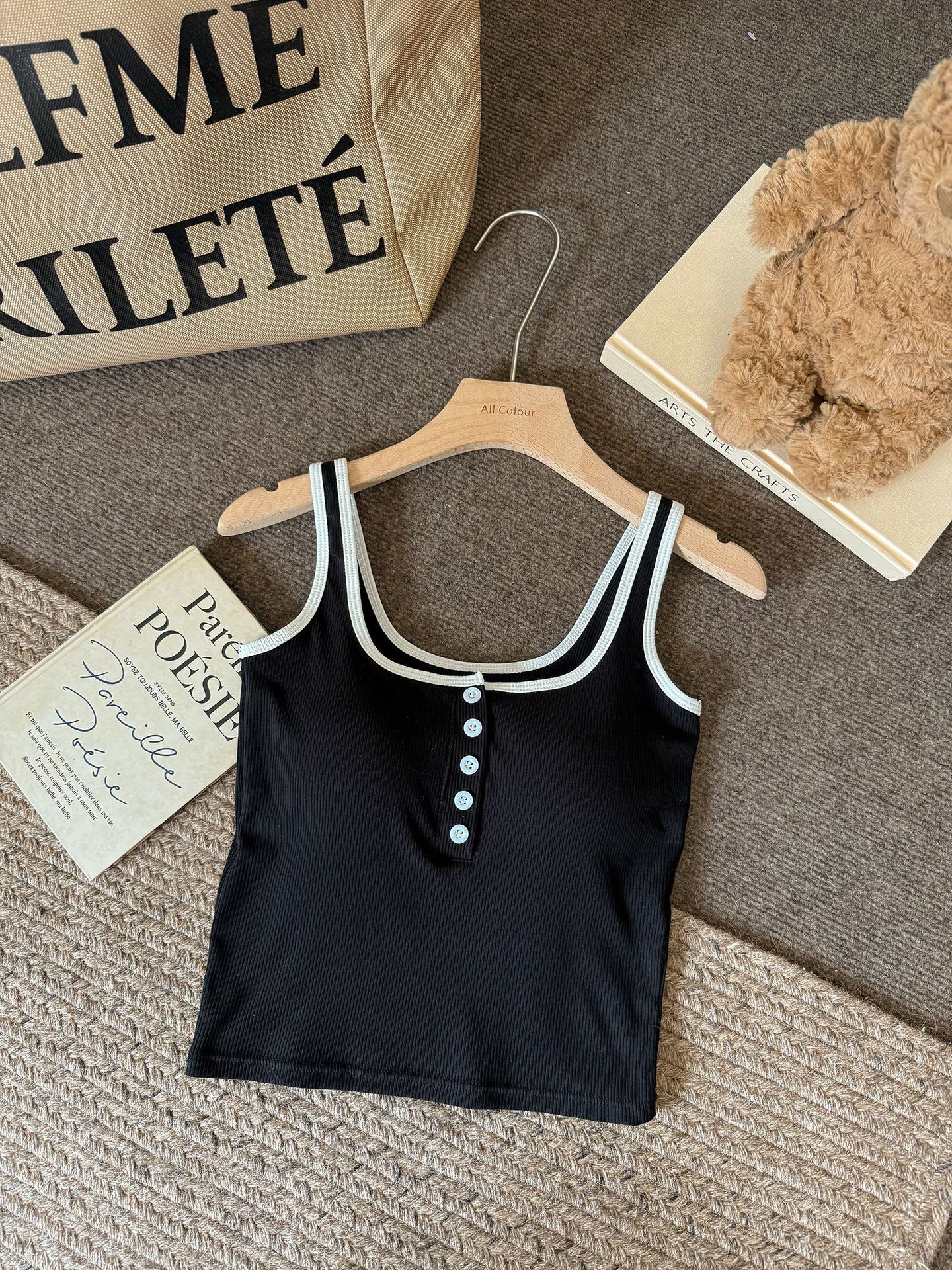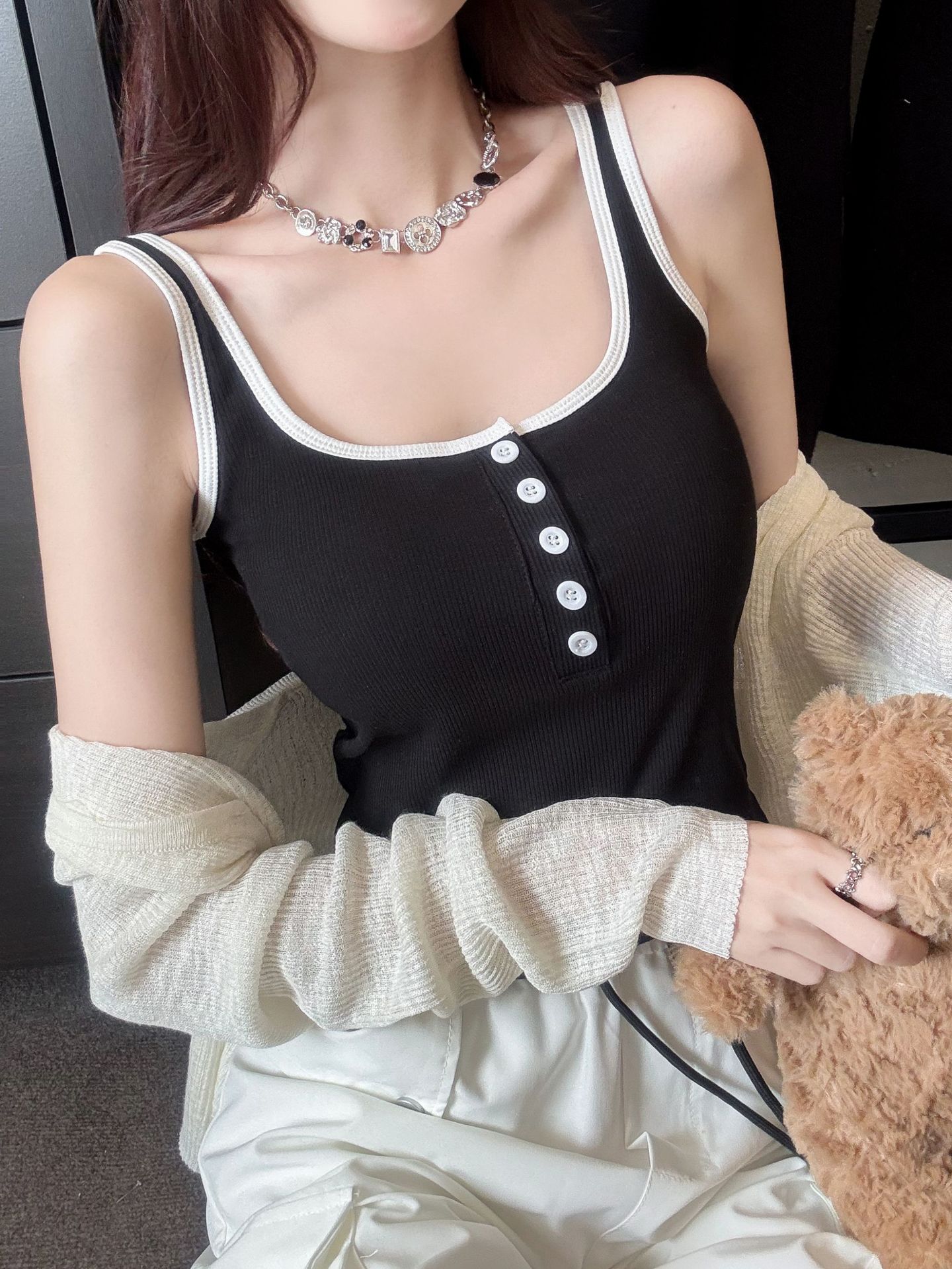 2025 새로운 스타일 아름다운 백 콘트라스트 컬러 카미 솔 조끼 여성 고정 가슴 패드 내부 착용 버튼 착용 올매치 베이스 조끼 여성을위한