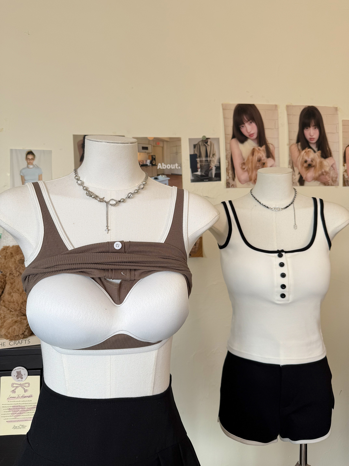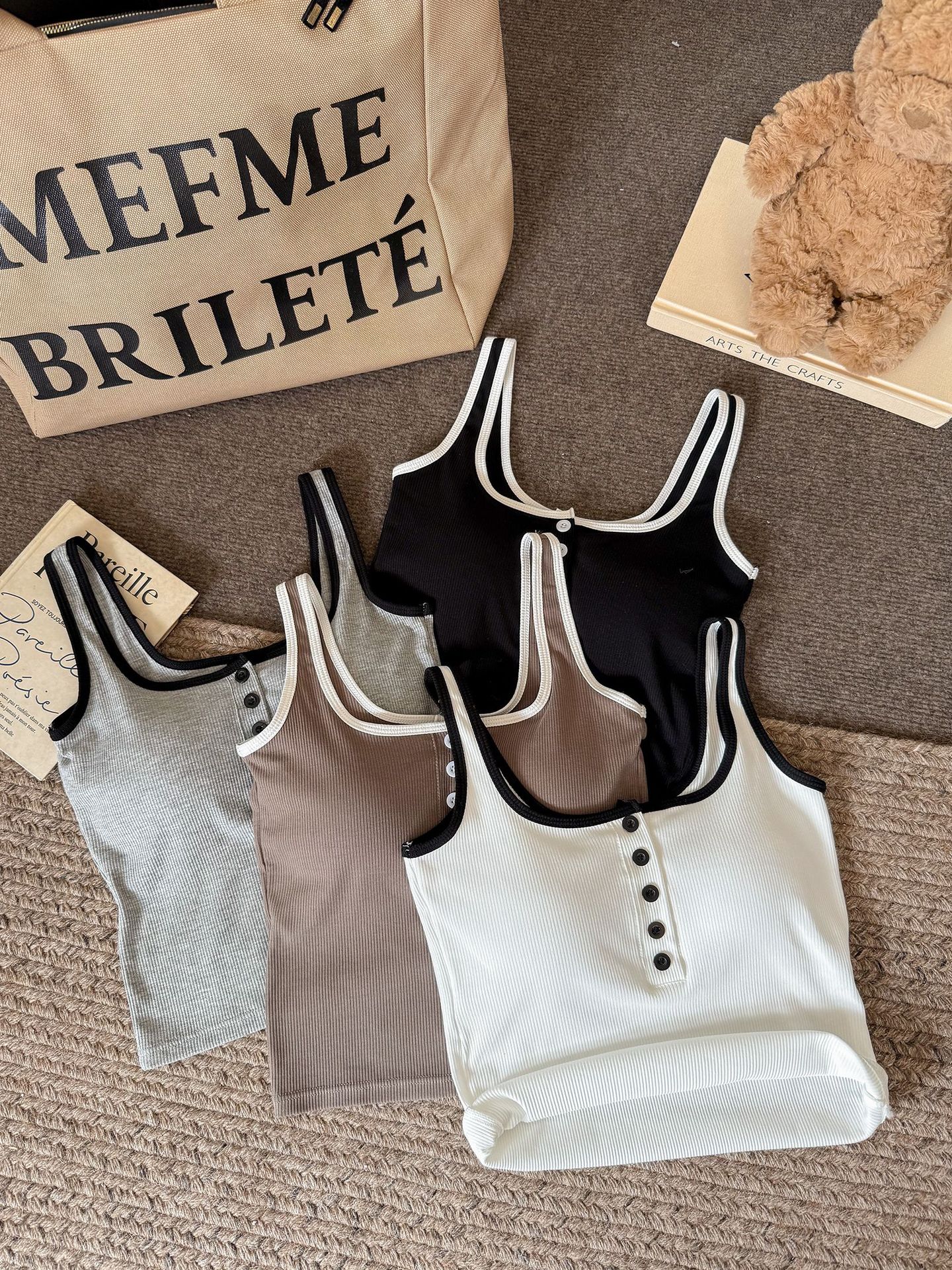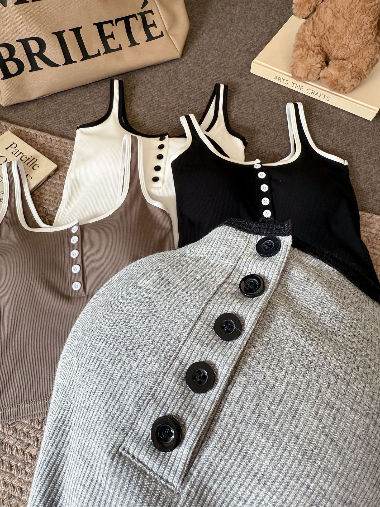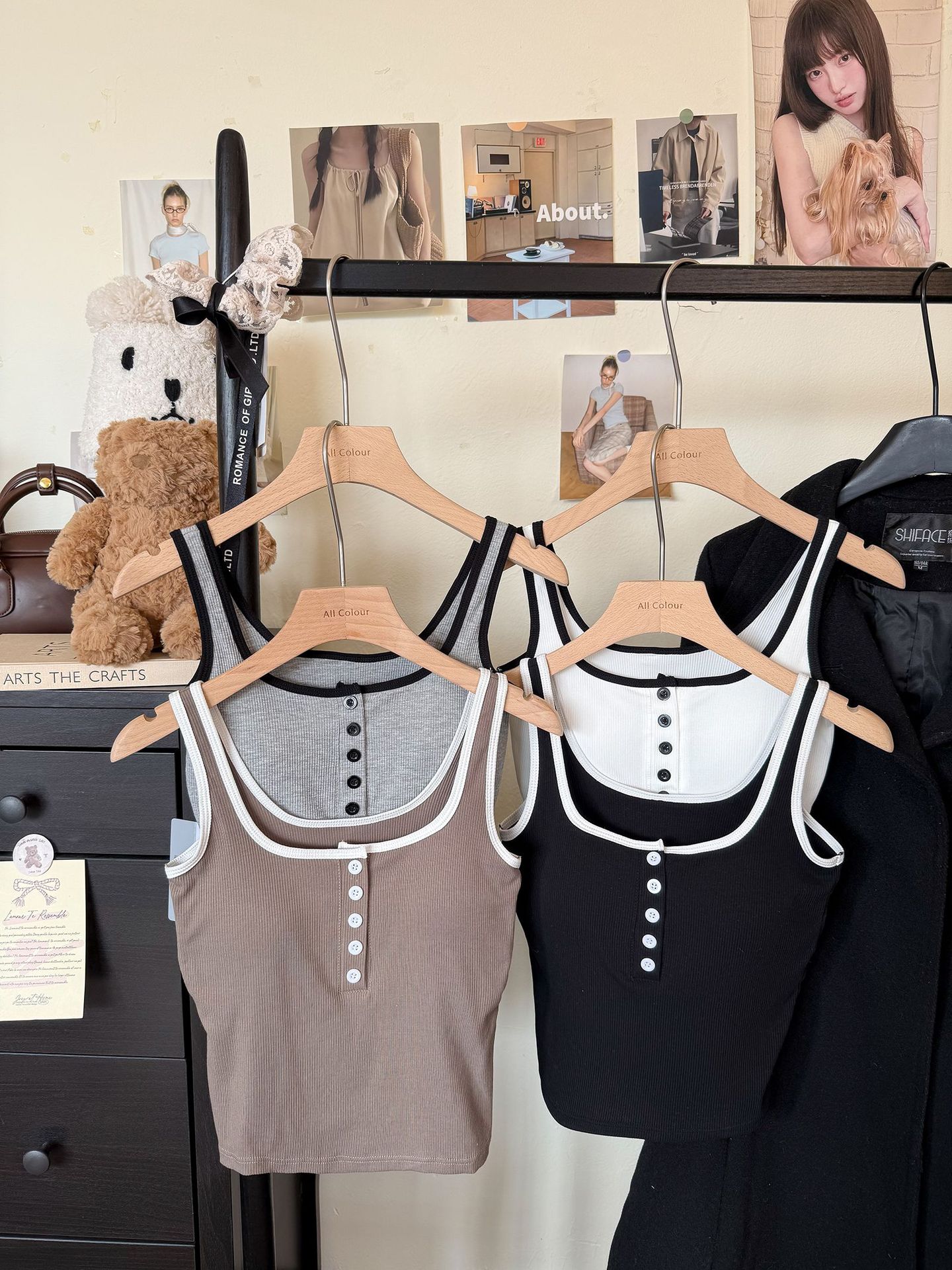 2025 새로운 스타일 아름다운 백 콘트라스트 컬러 카미 솔 조끼 여성 고정 가슴 패드 내부 착용 버튼 착용 올매치 베이스 조끼 여성을위한스토어 가기