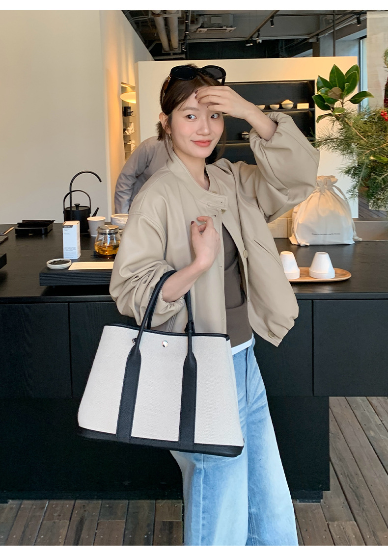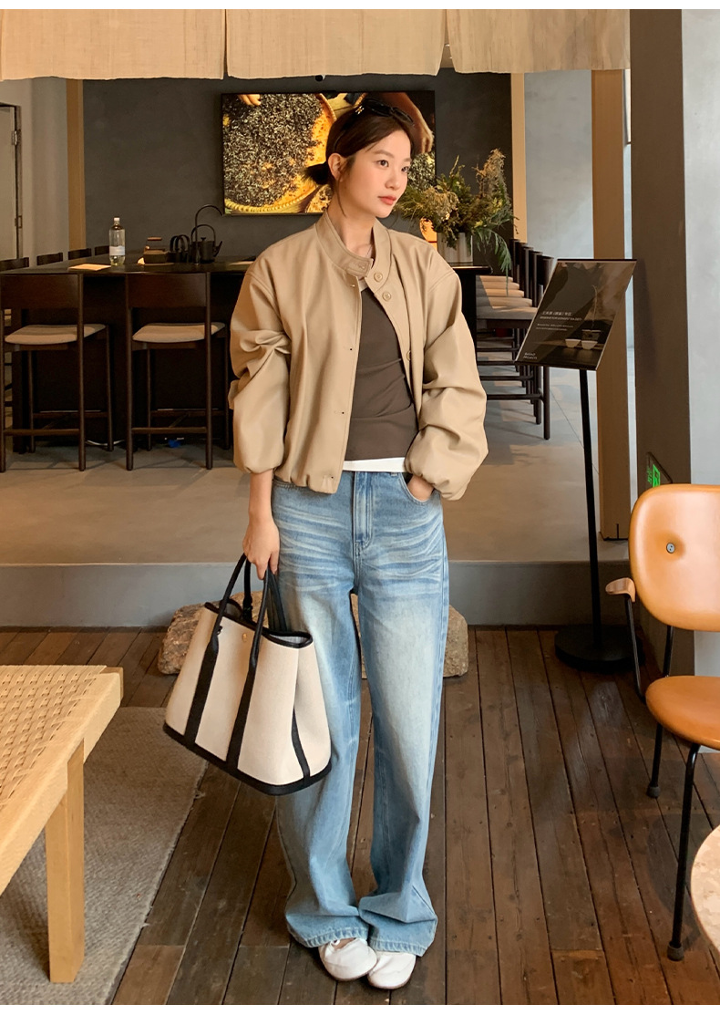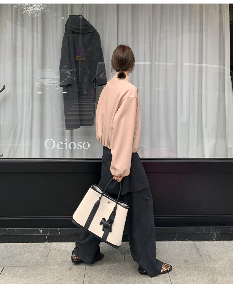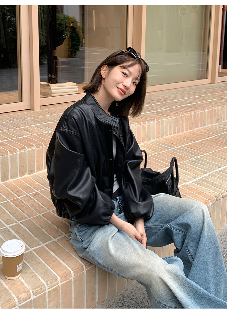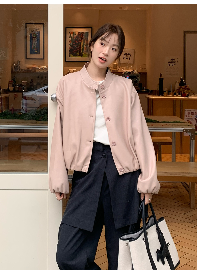 THE MIND 여성용 스탠드 칼라 PU 가죽 자켓 2025 13라인 가을 하이엔드 싱글 브레스트 자켓 T025스토어 가기