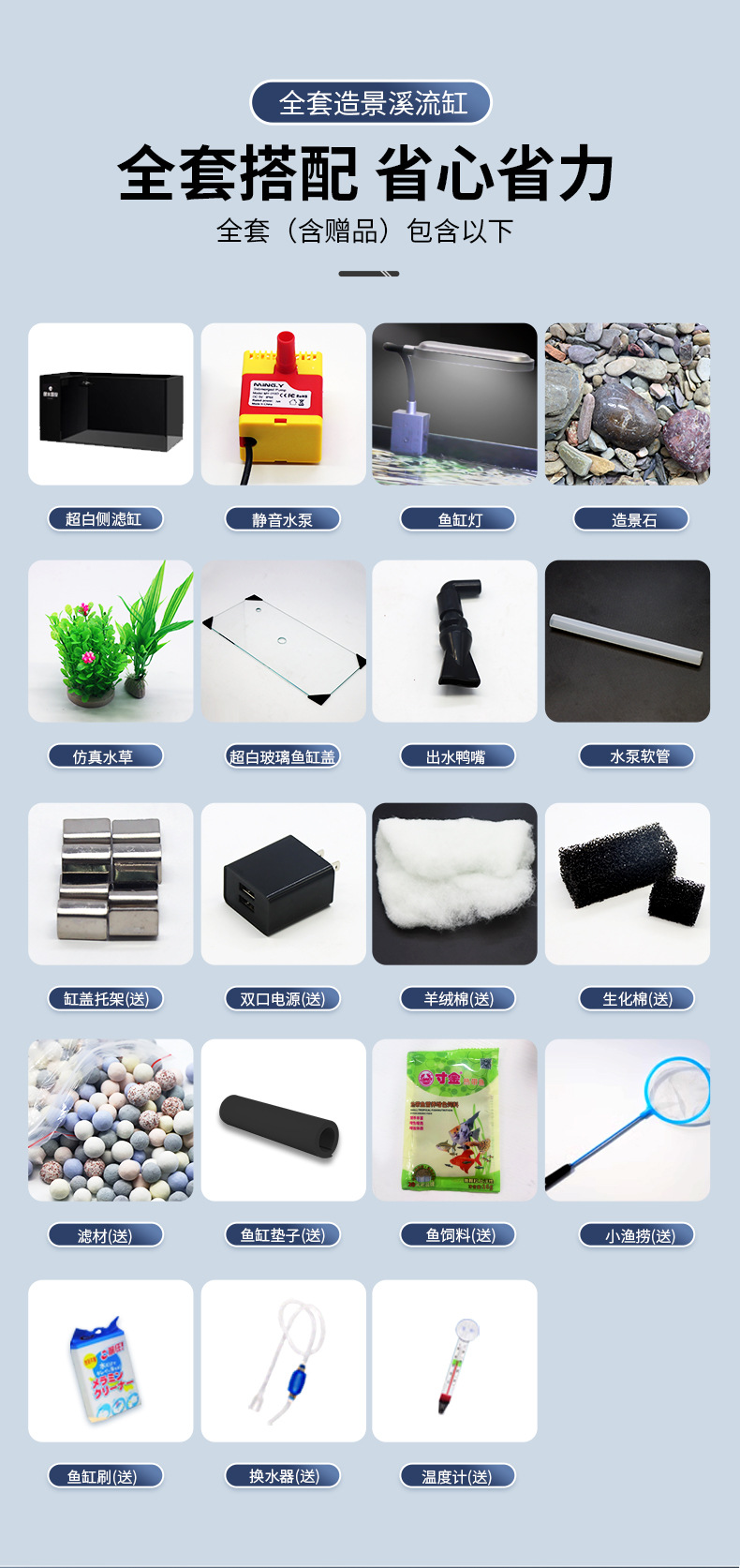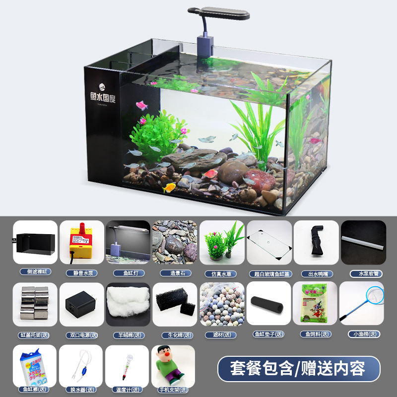 게으른 풍경 사이드 필터 물고기 탱크 풀 세트 물 잔디 데스크탑 물고기 탱크 작은 슈퍼 화이트 유리 거실 가정용 사이드 필터 물고기 탱크