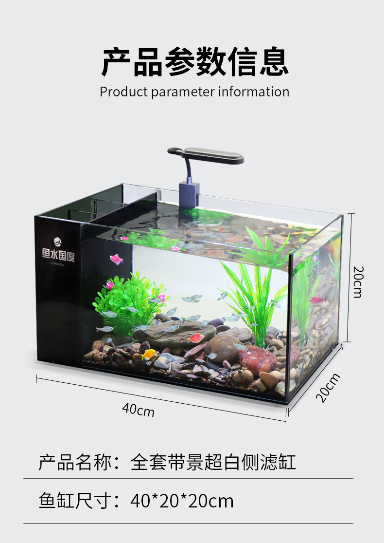 게으른 풍경 사이드 필터 물고기 탱크 풀 세트 물 잔디 데스크탑 물고기 탱크 작은 슈퍼 화이트 유리 거실 가정용 사이드 필터 물고기 탱크스토어 가기