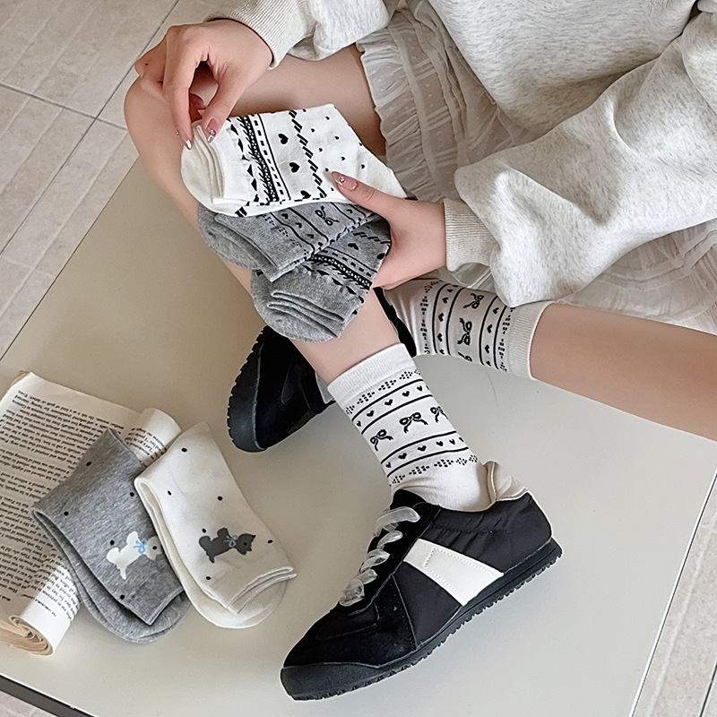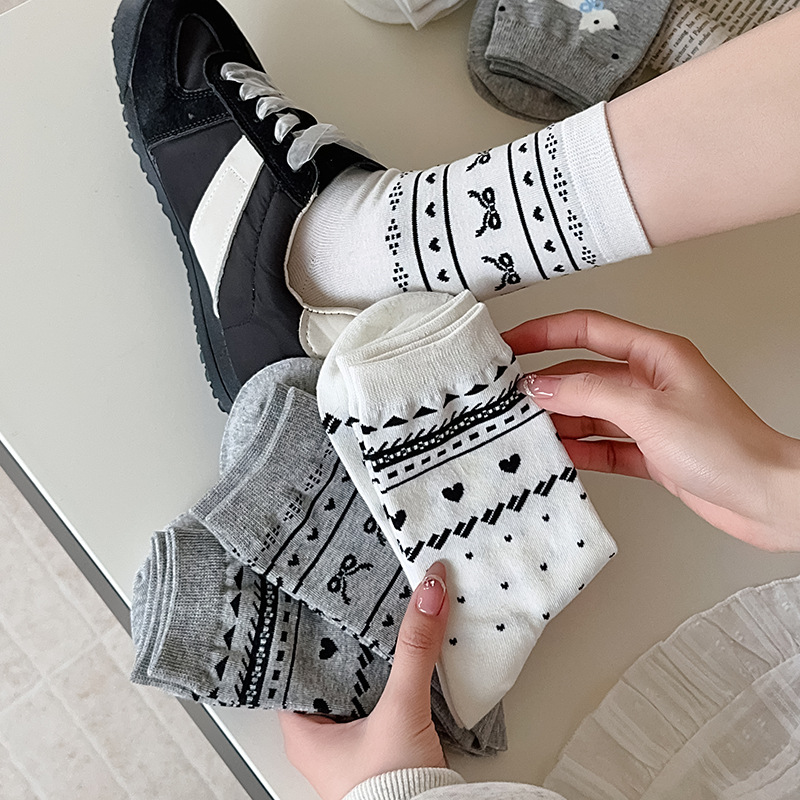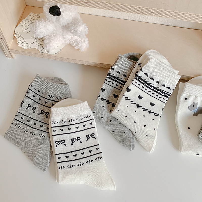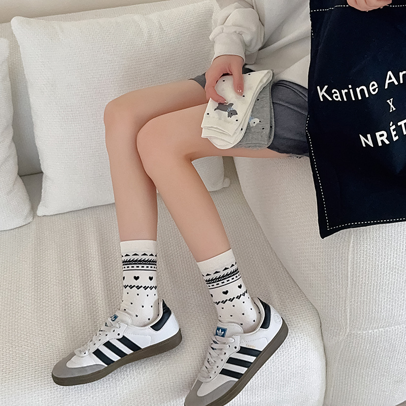 25 년 봄과 가을 새로운 공정한 섬 양말 여성 튜브 양말 얇은 사랑 줄무늬 동쪽 게이트 한국 양말