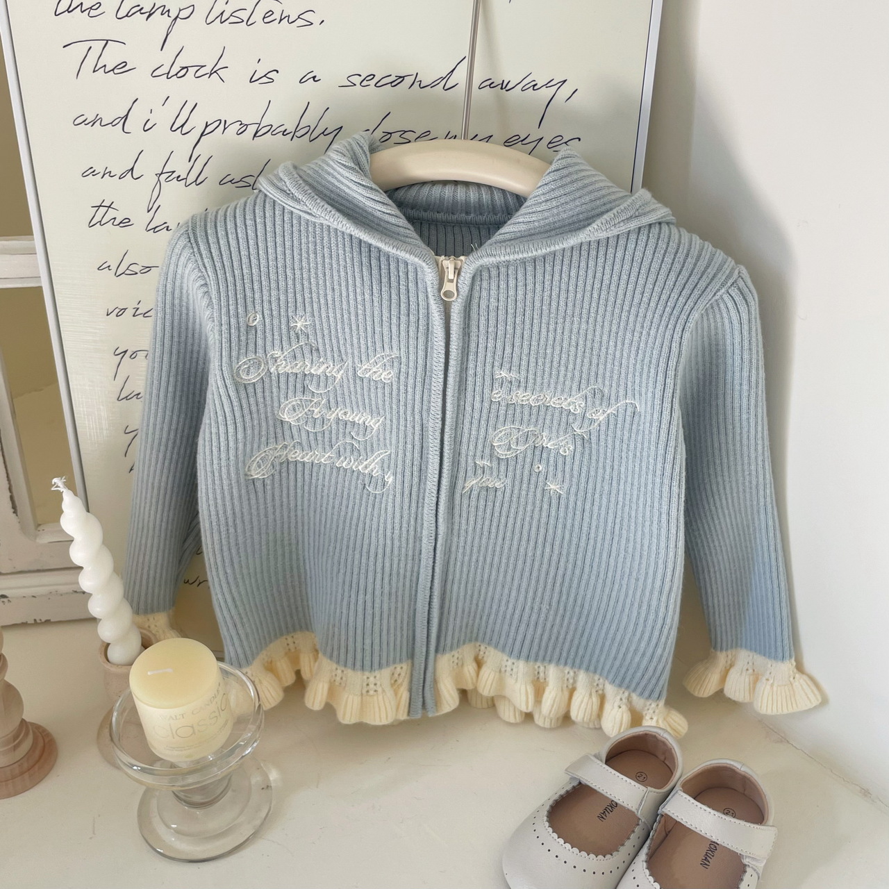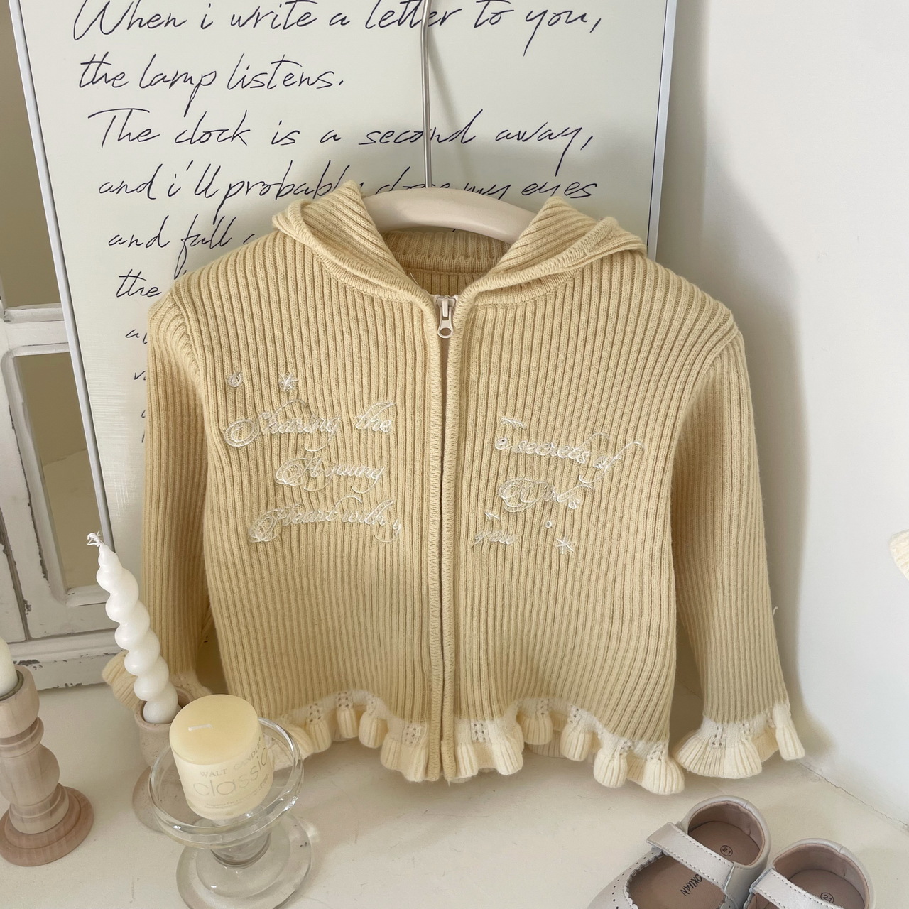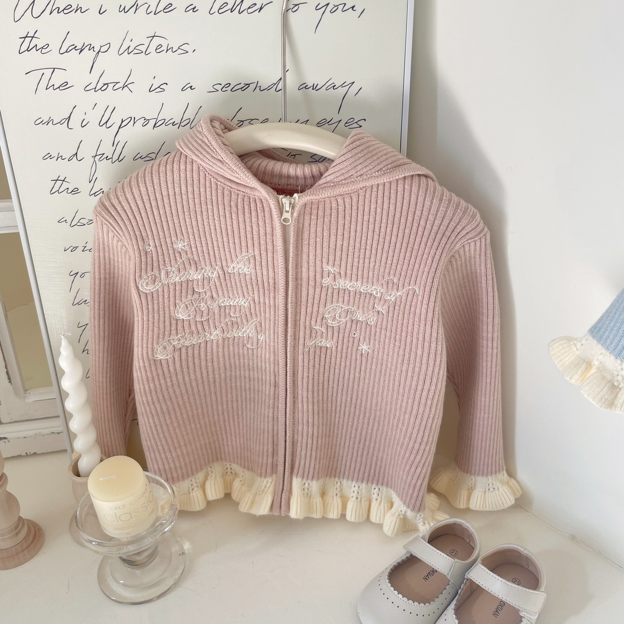 MMTKIDS 2025 봄 새로운 자수 지퍼 스웨터 후드 키즈 N299