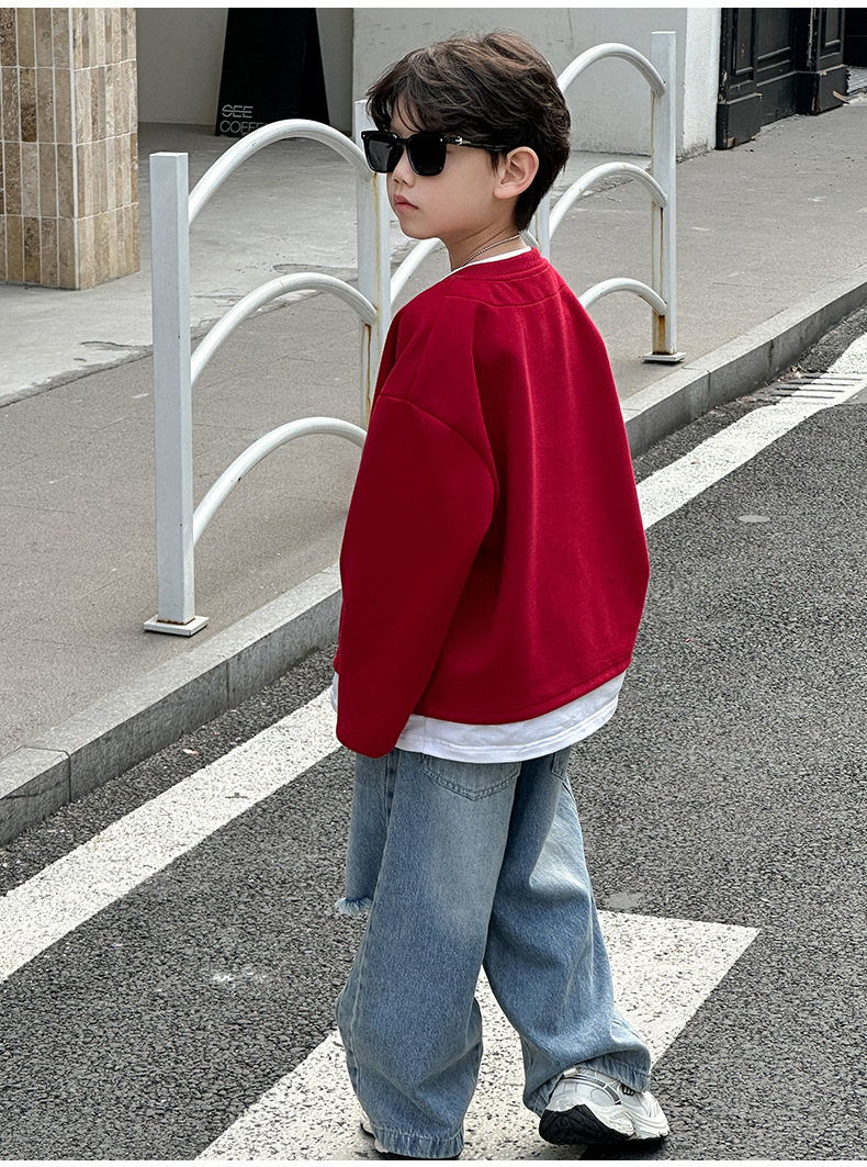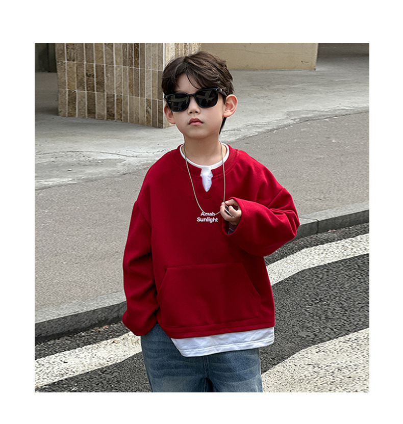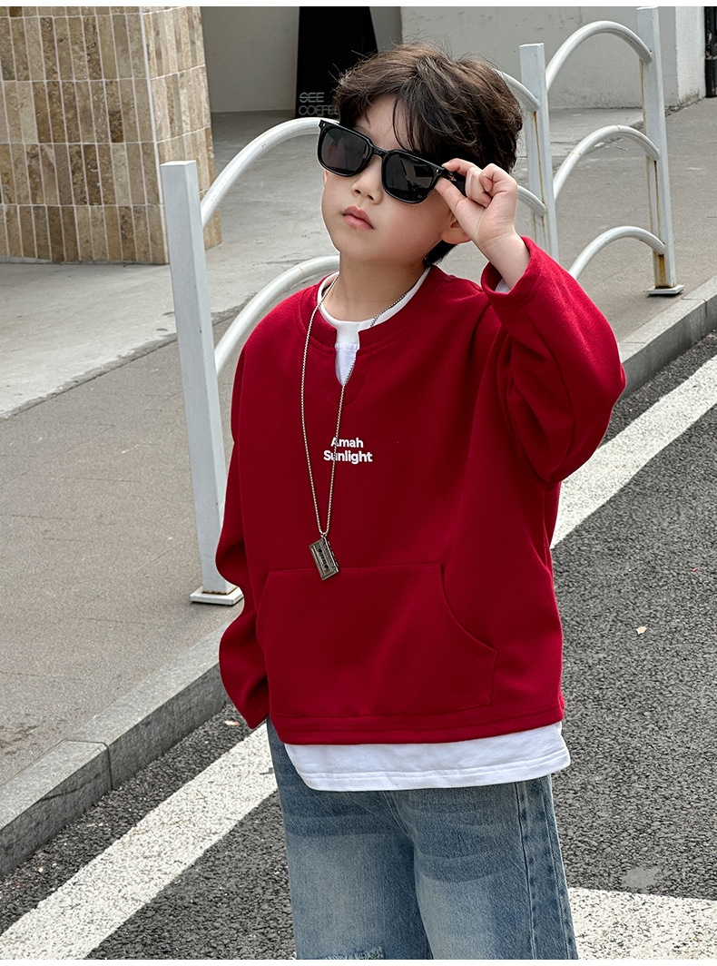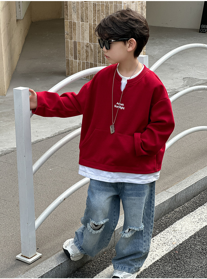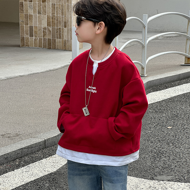 소년 운동복 2025 봄 새로운 한국 스타일 어린이 빨간색 캐주얼 아동 의류 봄 탑 중소형 어린이 풀오버스토어 가기