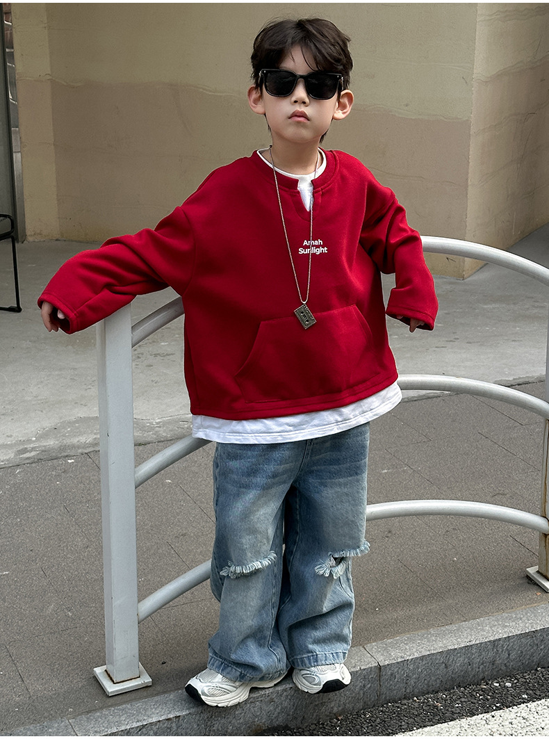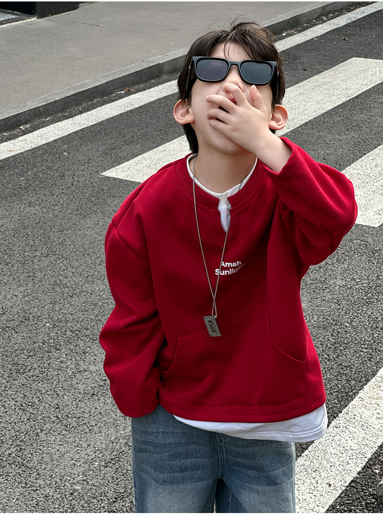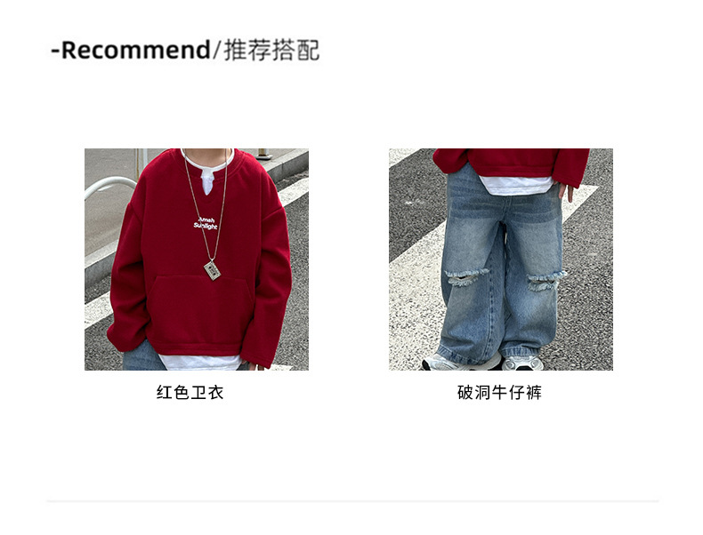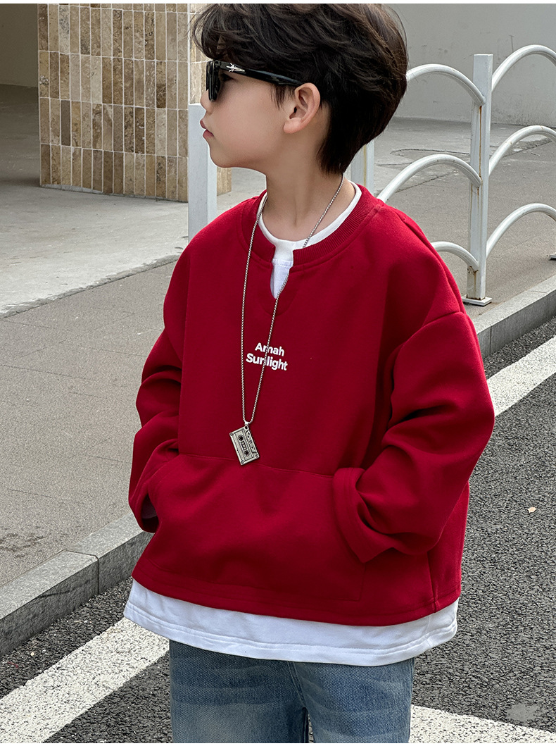 소년 운동복 2025 봄 새로운 한국 스타일 어린이 빨간색 캐주얼 아동 의류 봄 탑 중소형 어린이 풀오버스토어 가기