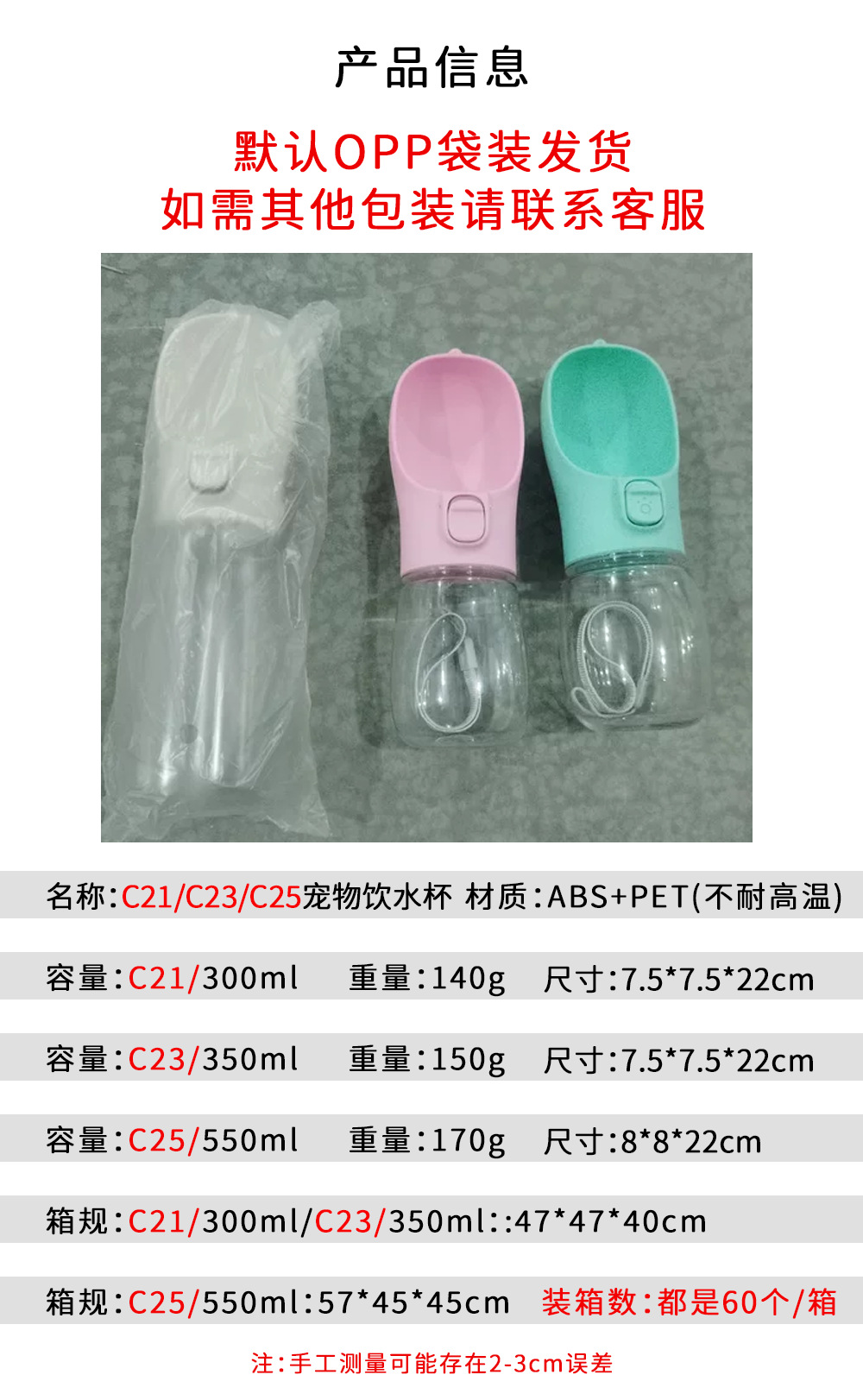 물병에서 물 컵을 동반 한 국경 간 애완 동물 개 야외 식수 디스펜서 테디 고양이 휴대용 물병