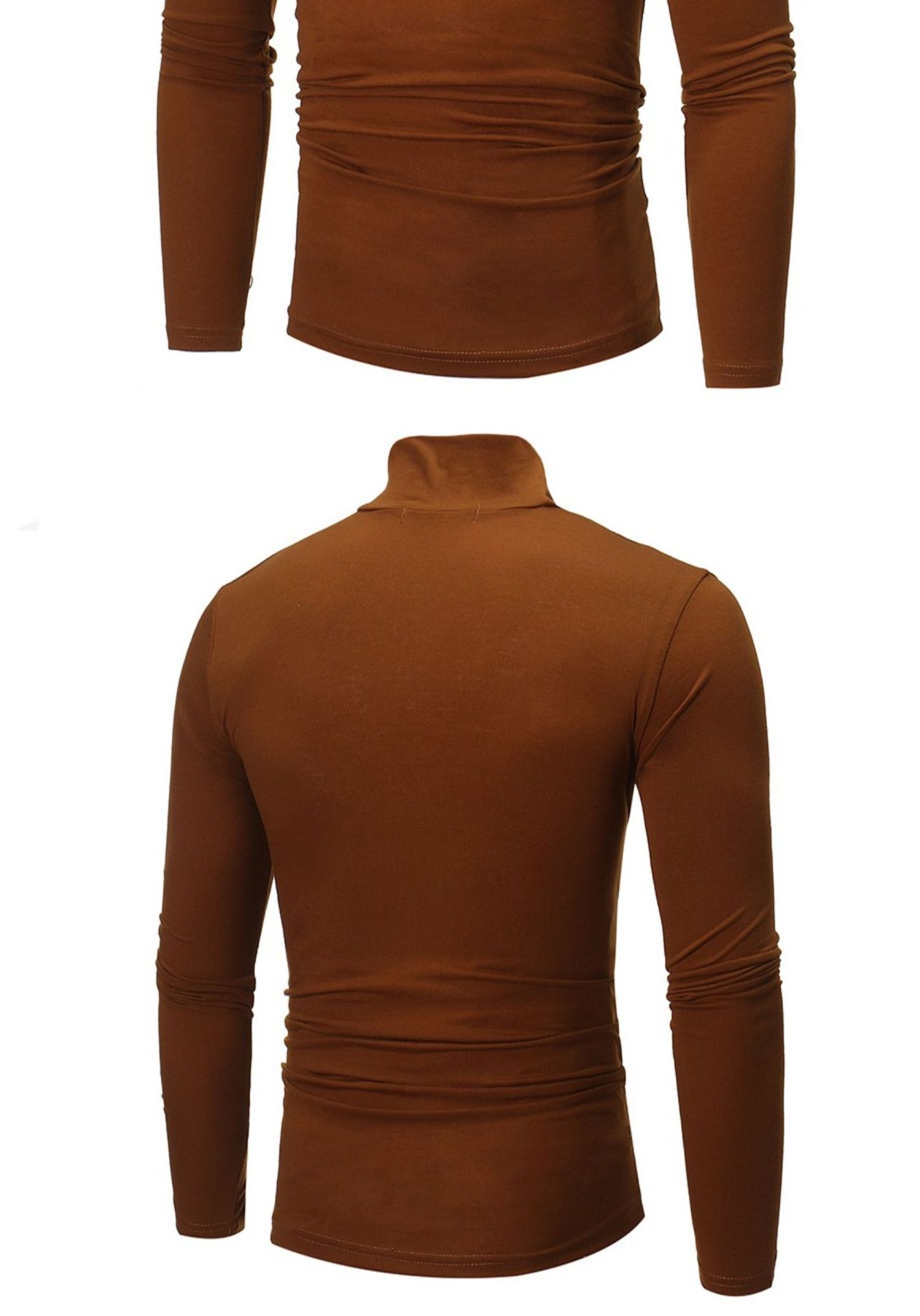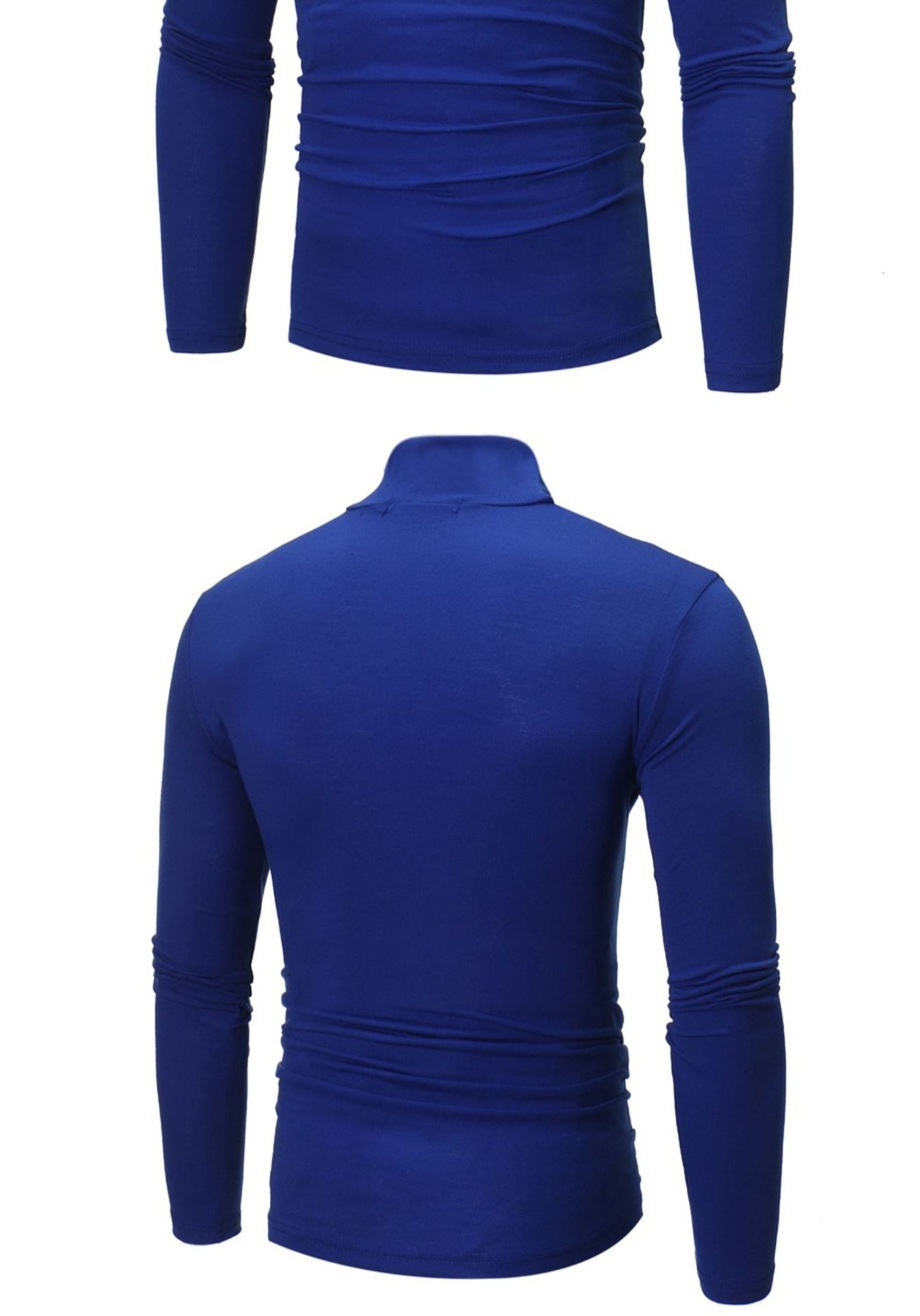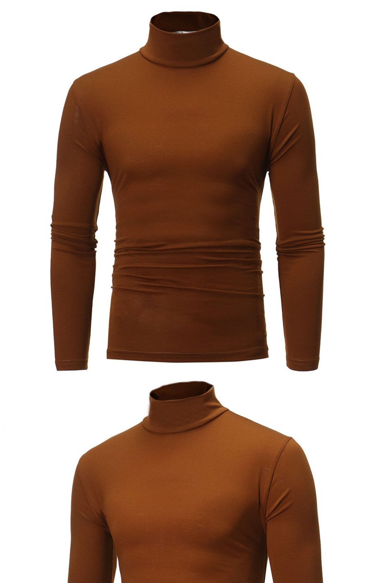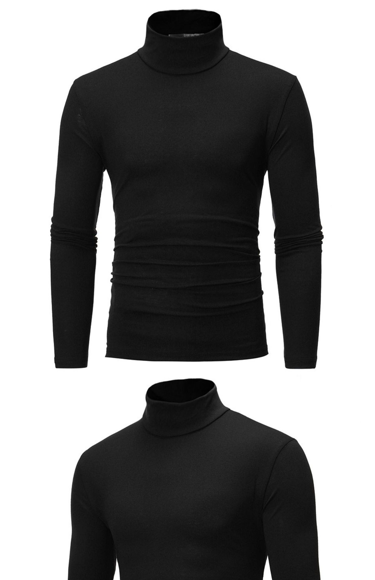 2025 대외 무역 아마존 가을과 겨울 새로운 청소년 남성 높은 칼라 얇은 단색 슬림 패션 긴 소매 티셔츠스토어 가기