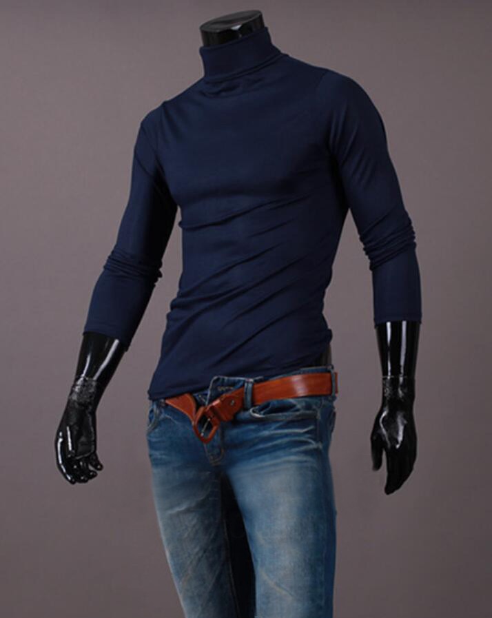 2025 대외 무역 아마존 가을과 겨울 새로운 청소년 남성 높은 칼라 얇은 단색 슬림 패션 긴 소매 티셔츠