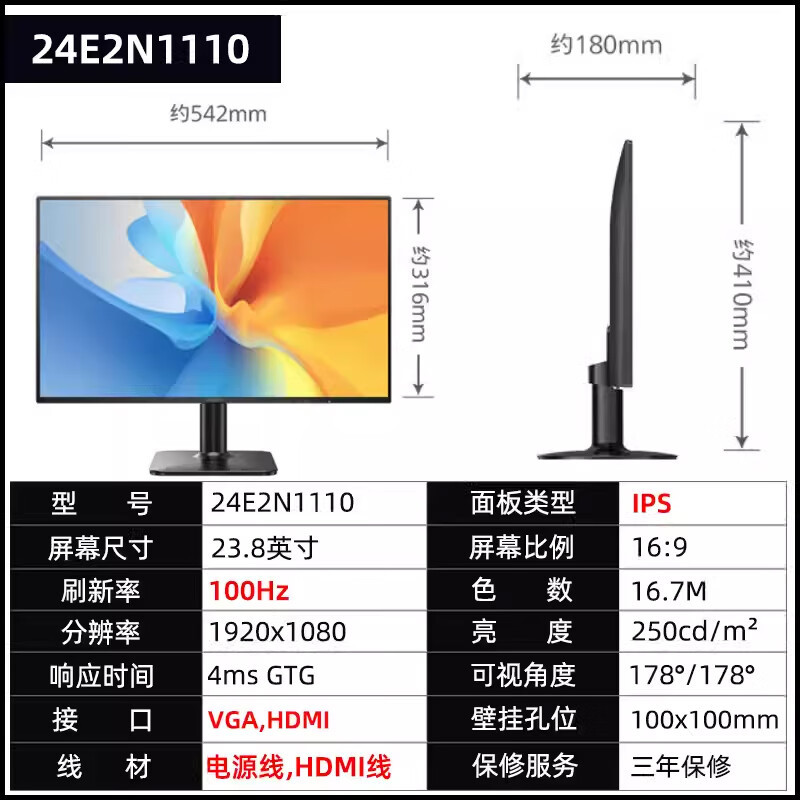 필립스 24E2N1110 23.8 인치 100HZ IPS 화면 LCD 사무실 컴퓨터 모니터