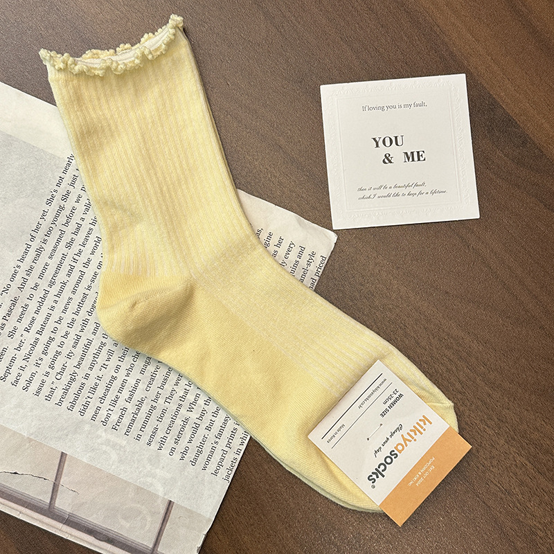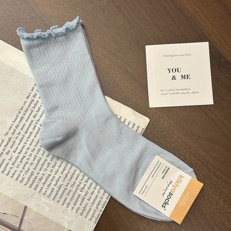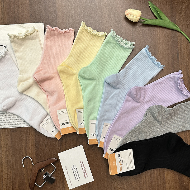 [재고] 25 이른 봄 새 kikiya 단색 나무 귀 양말 여성면 양말 한국 수입 도매스토어 가기