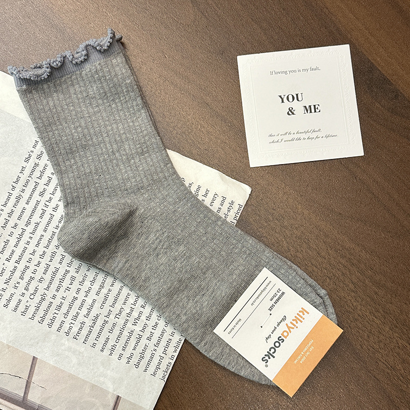 [재고] 25 이른 봄 새 kikiya 단색 나무 귀 양말 여성면 양말 한국 수입 도매
