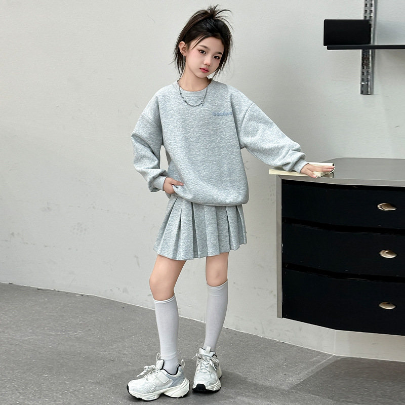 여자 가을 달콤한 쿨 세트 2024 새로운 큰 어린이 운동복 봄과 가을 느슨한 운동복 한국 주름 치마스토어 가기
