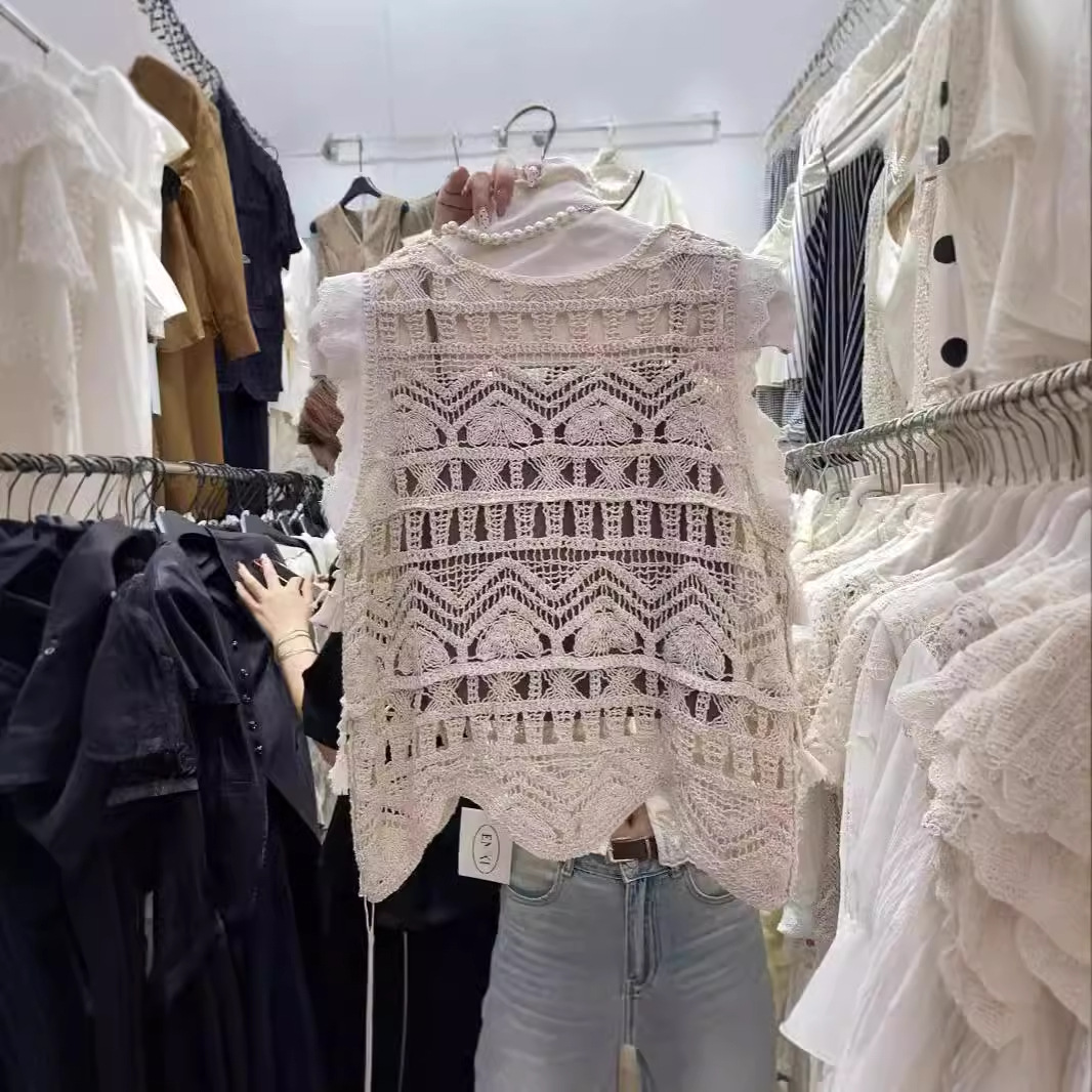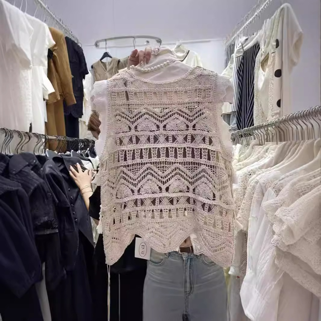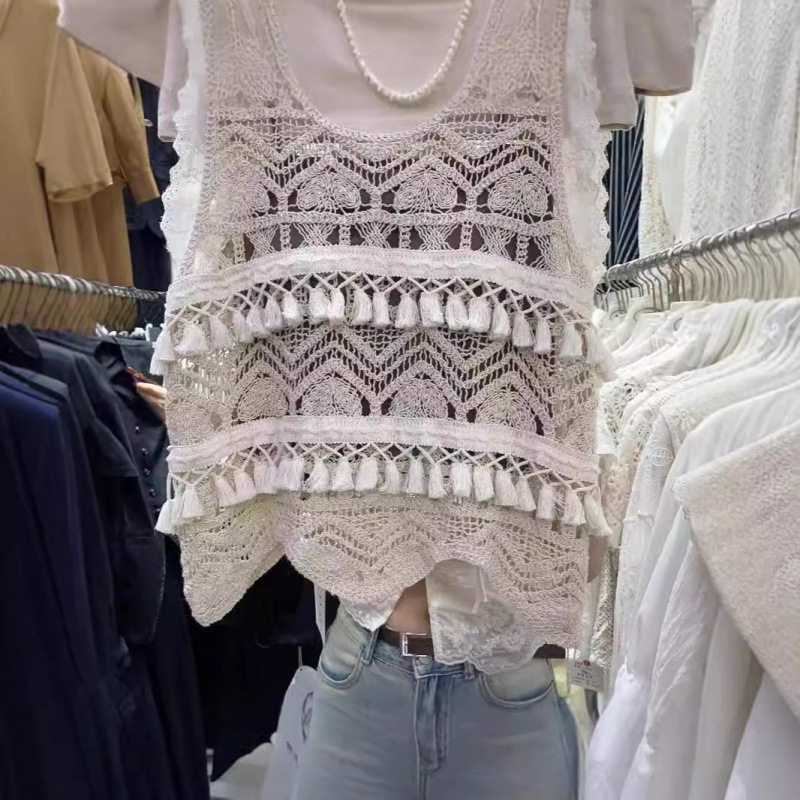 해변 휴가 스타일 빈 느슨한 니트 블라우스 여성의 여름 새로운 명암 컬러 바느질 치마 세트 트렌디스토어 가기
