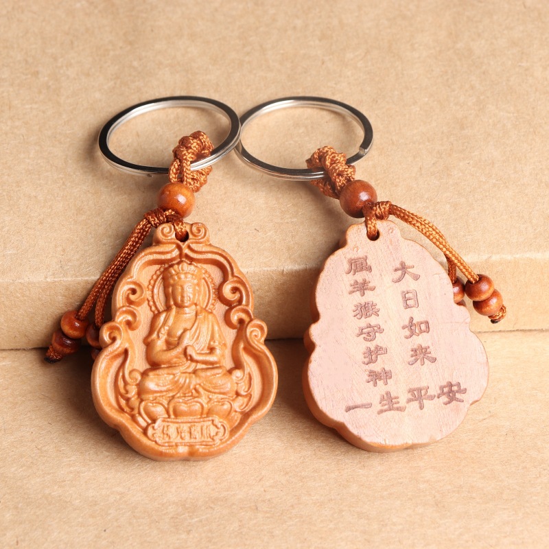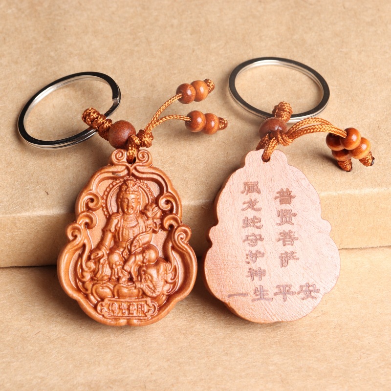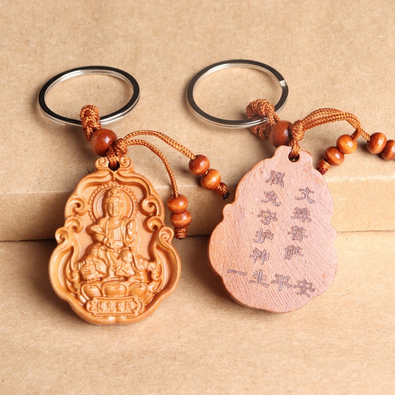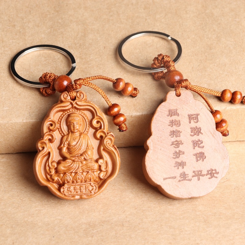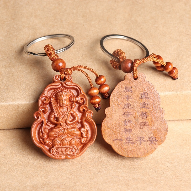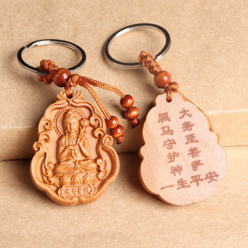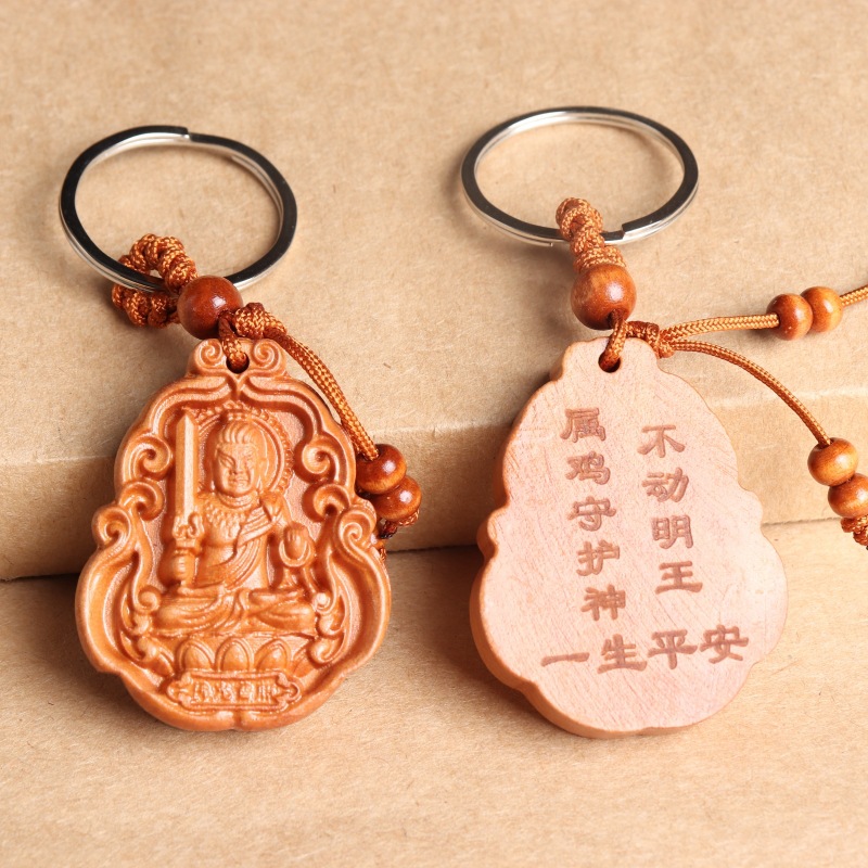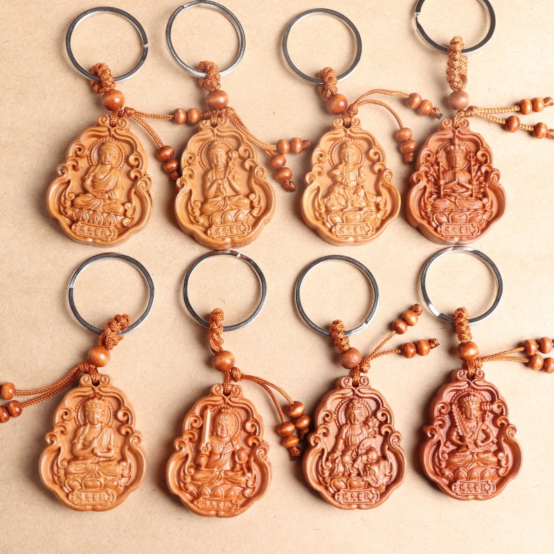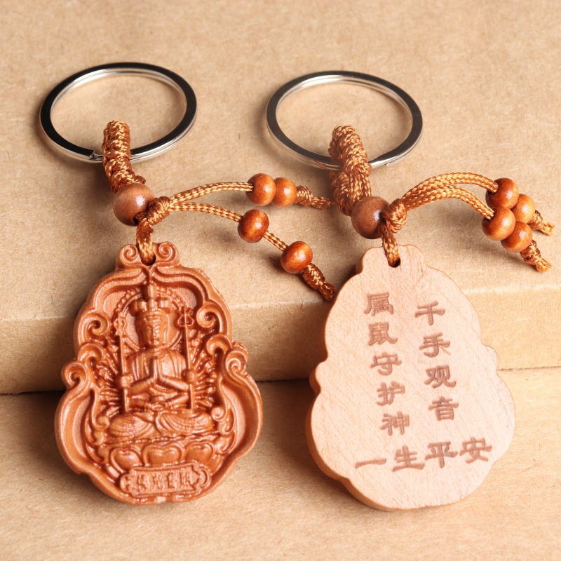 새로운 복숭아 나무 8 수호 성인 조디악 수호 성인 키 체인 천 손 Guanyin 키 체인 경치 좋은 핫 크래프트스토어 가기