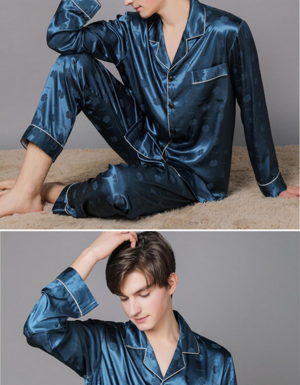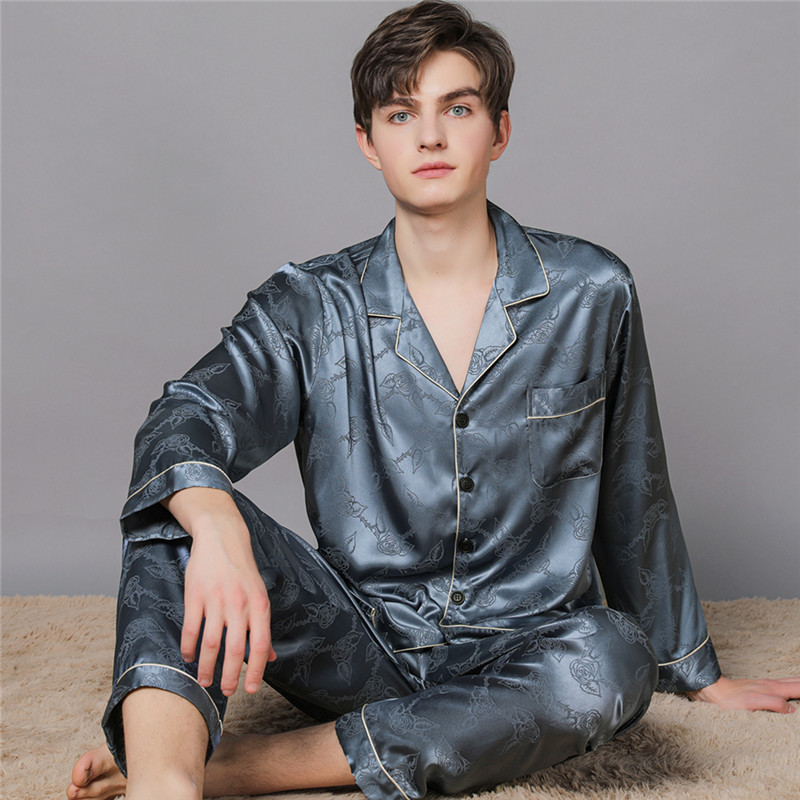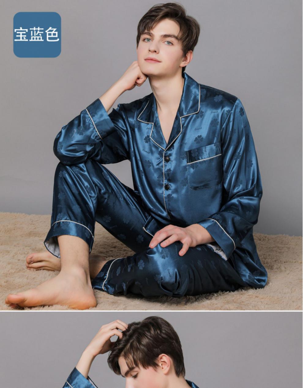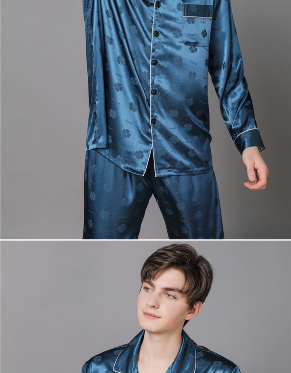 남자 실크 파자마 긴 소매 실크 사계절 플러스 사이즈 느슨한 봄과 가을 뽕나무 실크 아빠 홈 옷 세트스토어 가기