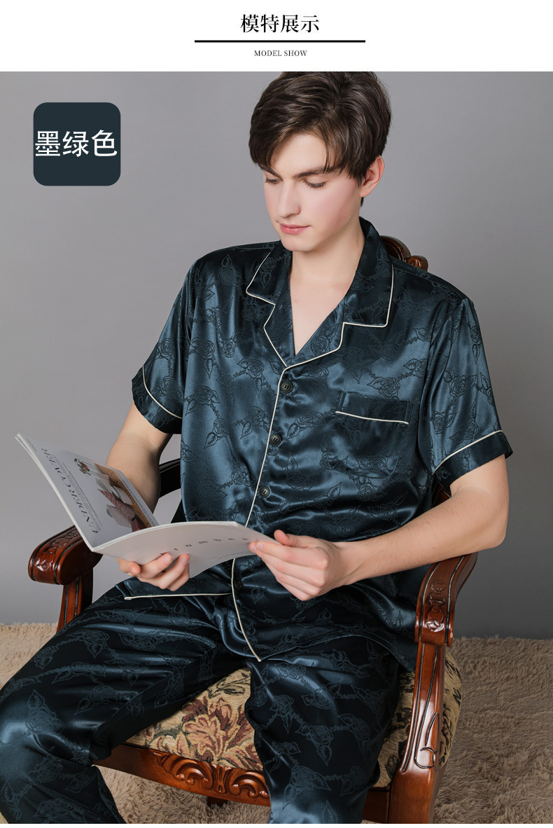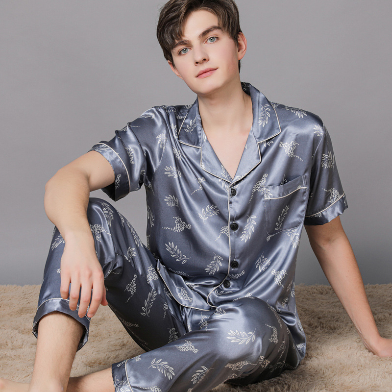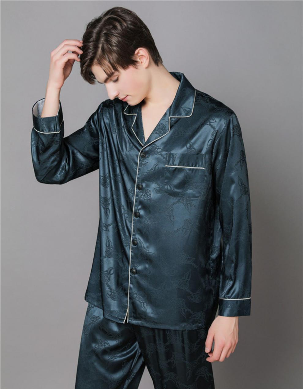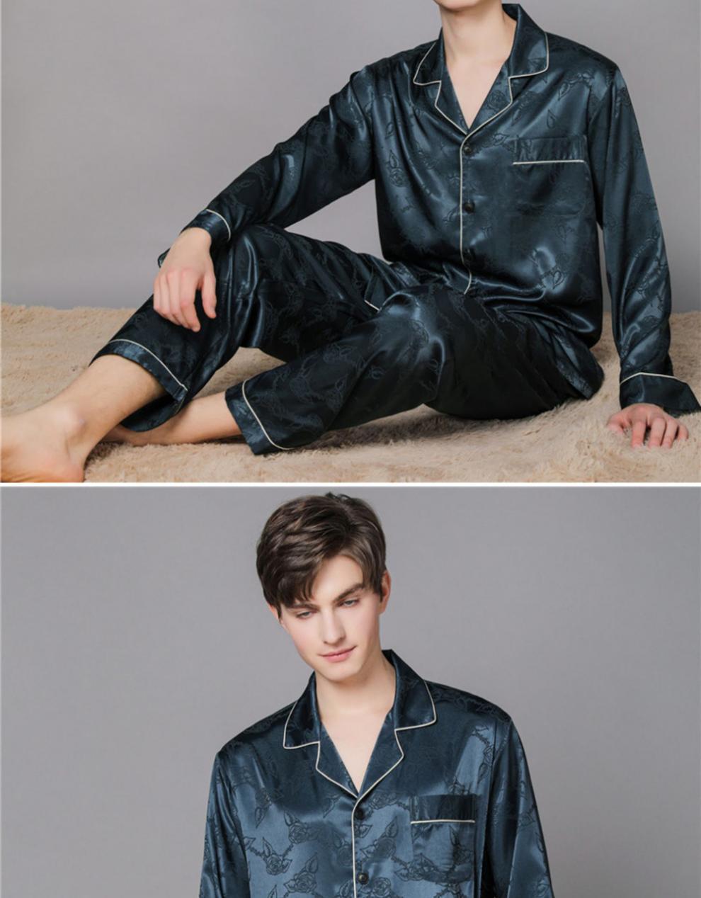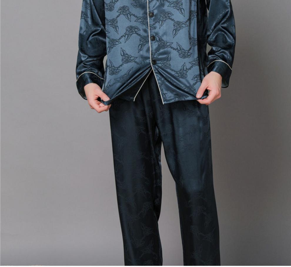 남자 실크 파자마 긴 소매 실크 사계절 플러스 사이즈 느슨한 봄과 가을 뽕나무 실크 아빠 홈 옷 세트스토어 가기