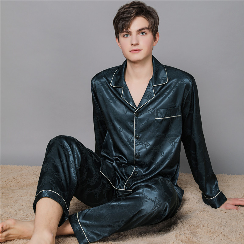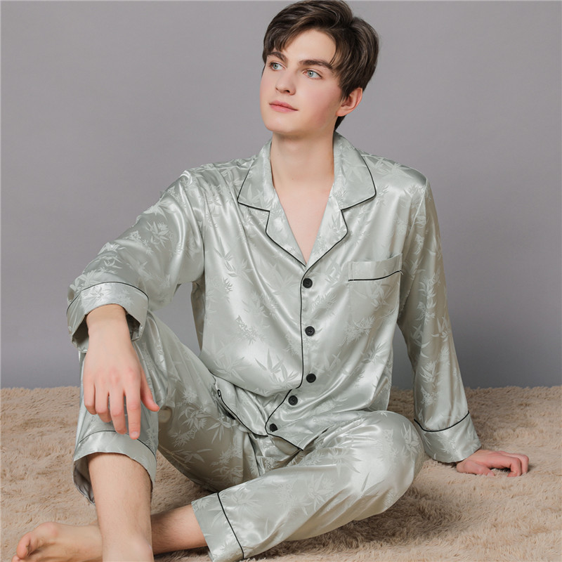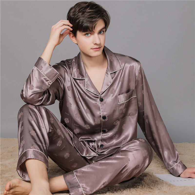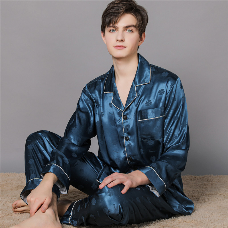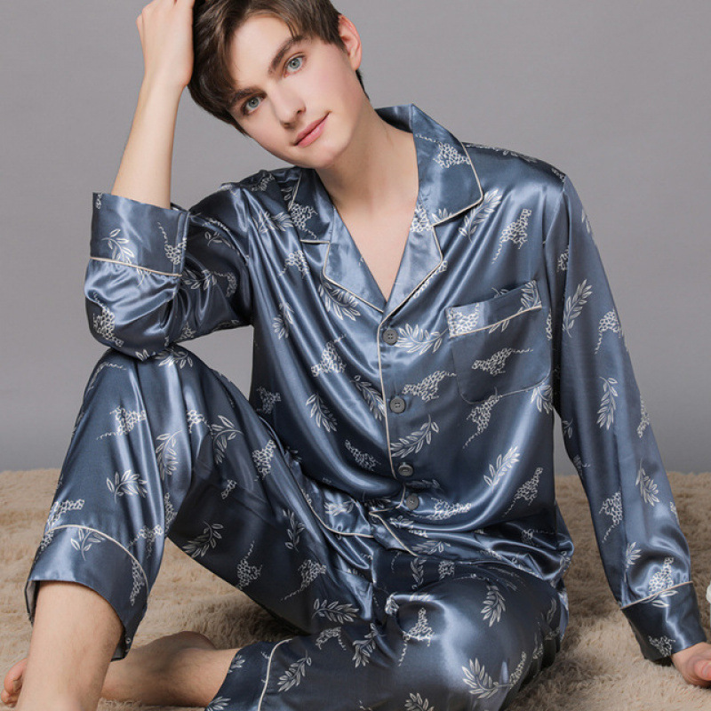 남자 실크 파자마 긴 소매 실크 사계절 플러스 사이즈 느슨한 봄과 가을 뽕나무 실크 아빠 홈 옷 세트