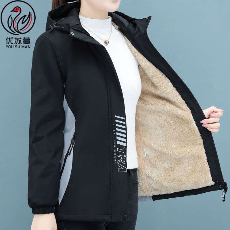 여성용 재킷 플러스 벨벳 및 두꺼운 2024 새로운 봄, 가을 다목적 루즈 대형 가을, 겨울 재킷 탑 공장스토어 가기