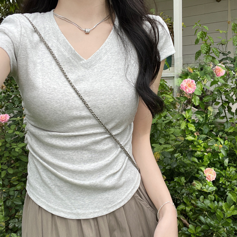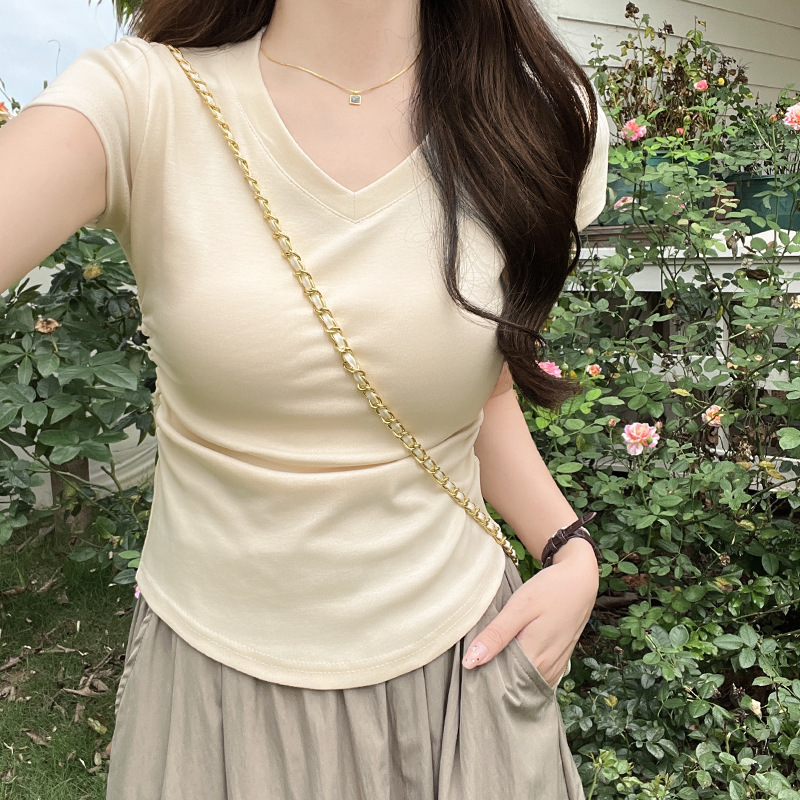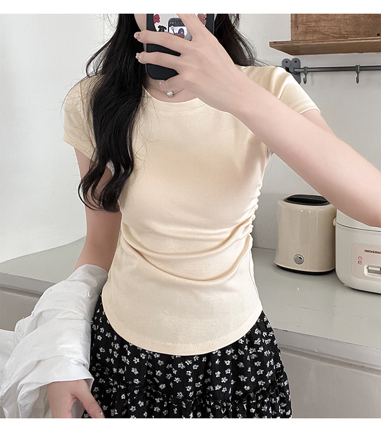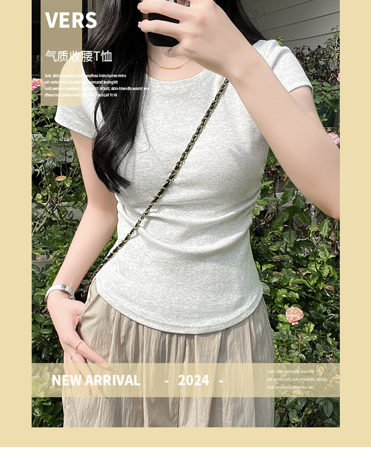 디자인 센스 작은 어깨 순수 코튼 라운드 넥 반팔 티셔츠 여성용 여름 스파이스 걸스 짧은 하이 허리 슬림 핏 올매치 탑스토어 가기