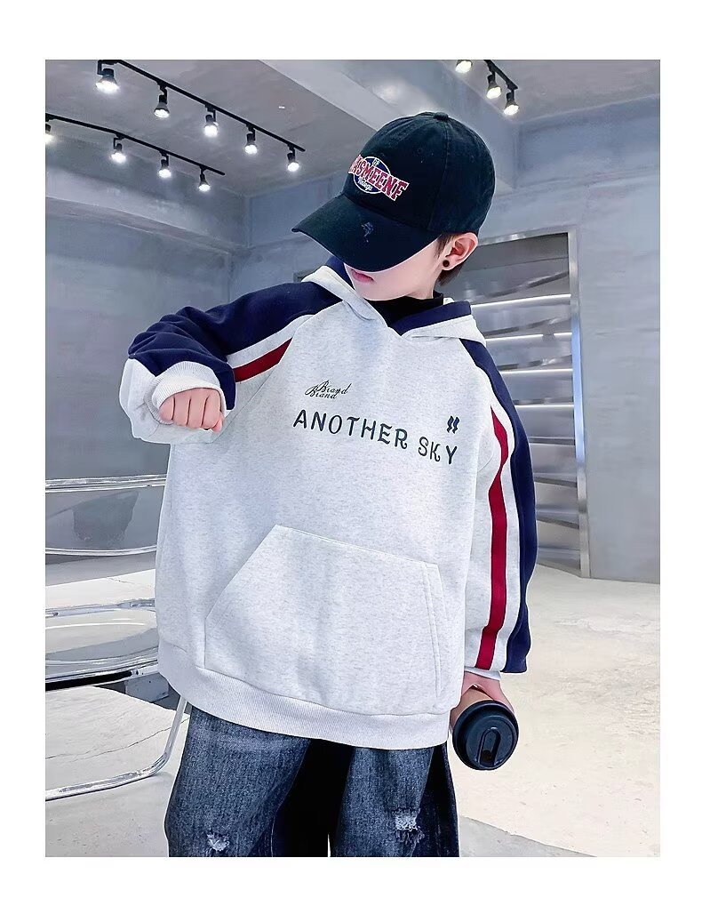 미국 편지 인쇄 스티칭 후드 스웨트 셔츠 어린이 코트 기모 두꺼운 소년의 올 매치 탑