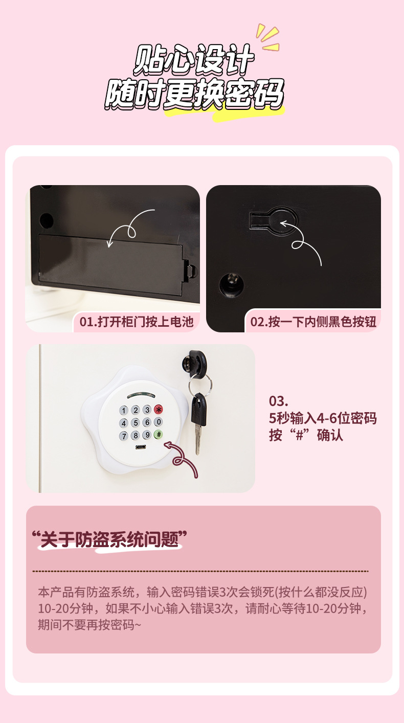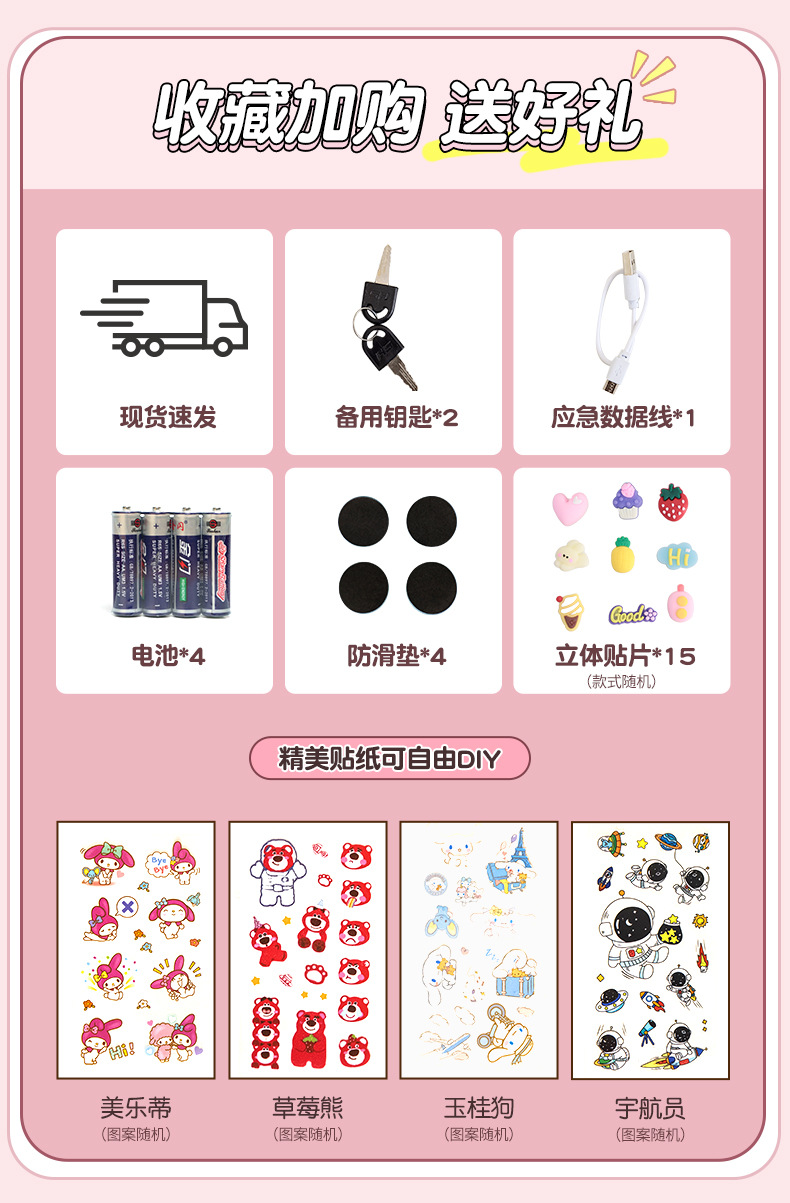 • 프린세스 핑크 - 비밀번호 + 열쇠 + 스마트 도어 열림 [ 200k 위안 저장 가능]