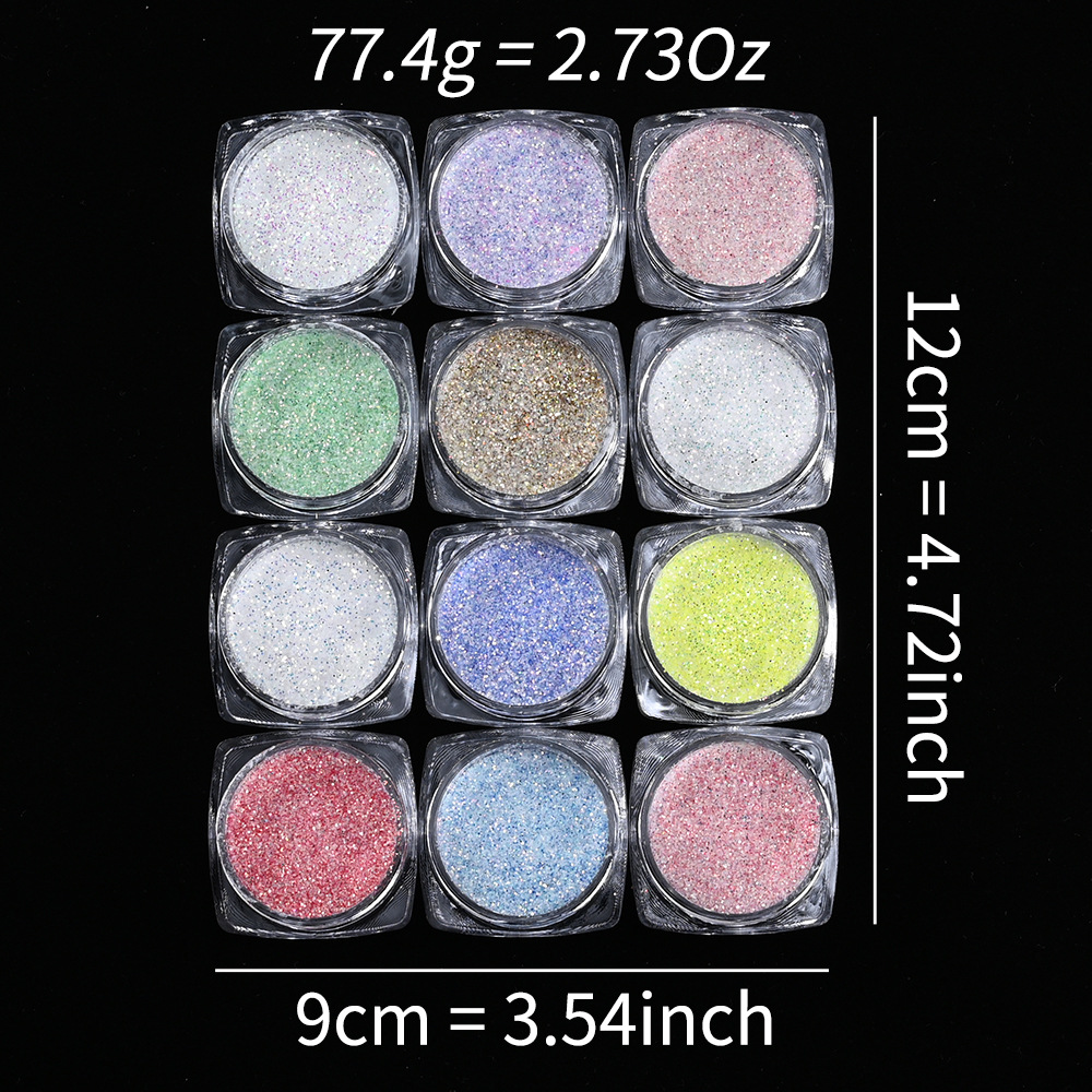 국경 간 핫 세일 12 색 바다 소금 파우더 마카롱 컬러 반짝이는 네일 아트 굵은 파우더 여성 DIY 네일 반짝이 파우더 도매