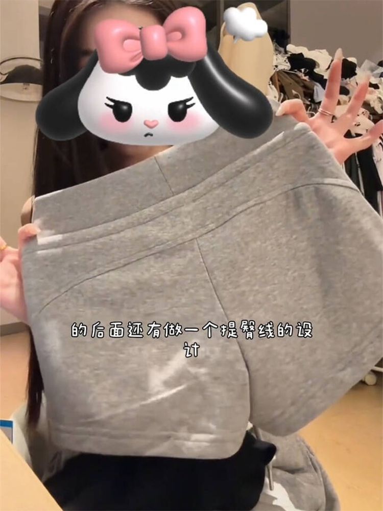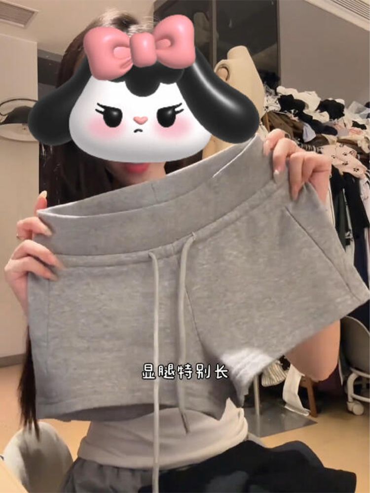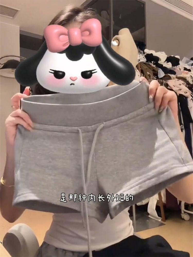 미국 스타일의 뜨거운 소녀 낮은 허리 끈 스포츠 반바지 여성용 슬림-맞는 외부 회색 엉덩이 슬리밍 3 점 캐주얼 핫 팬츠