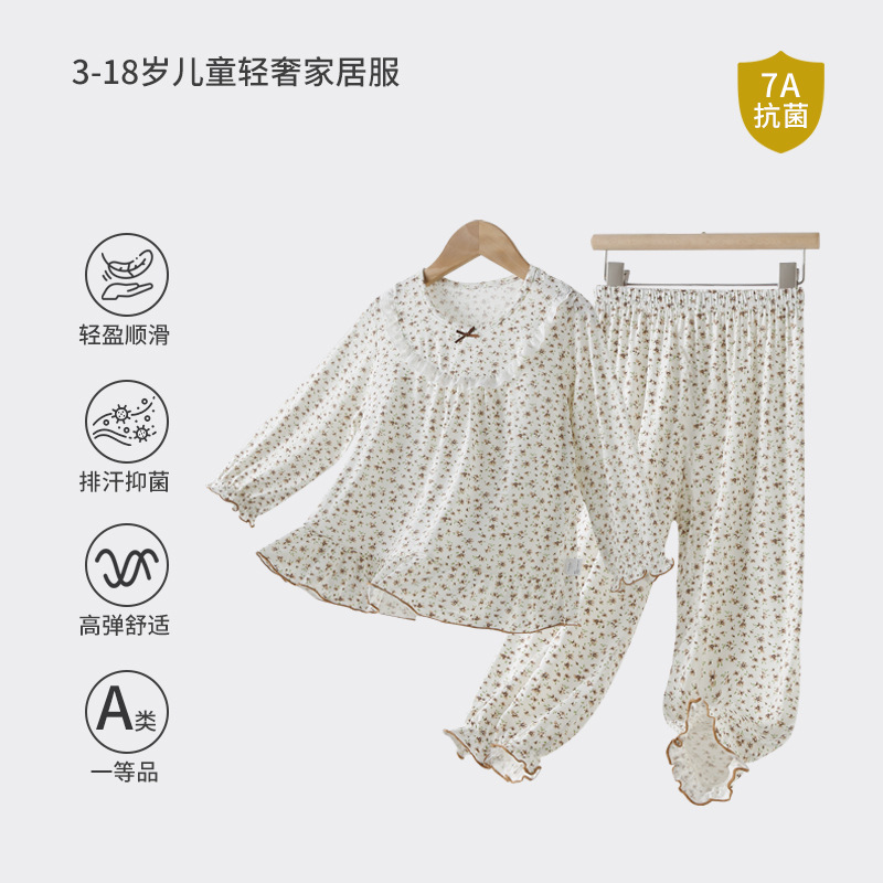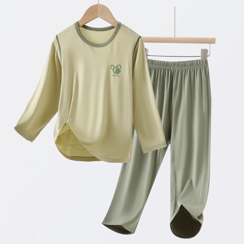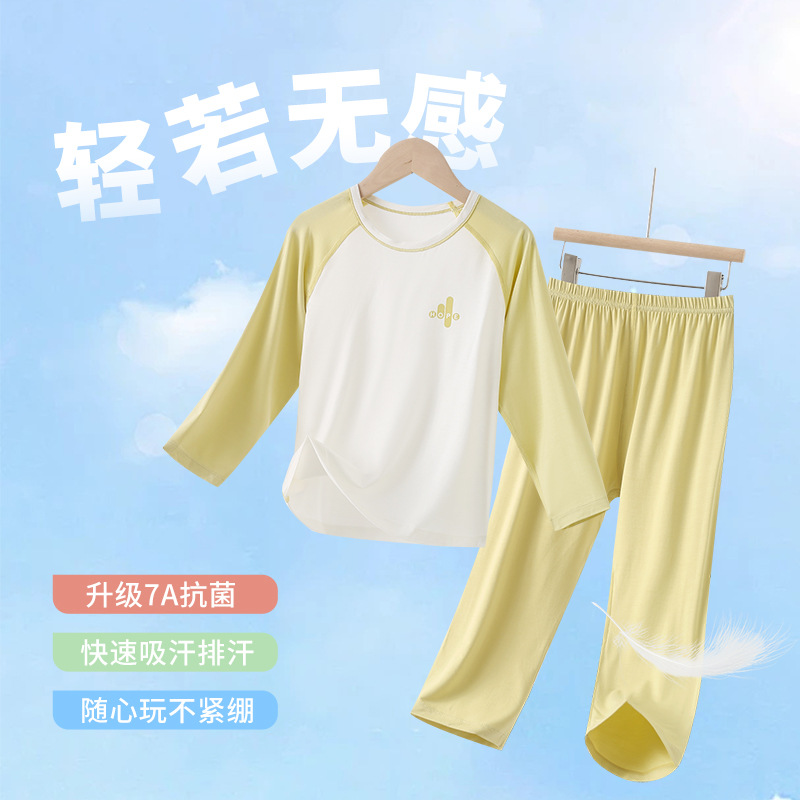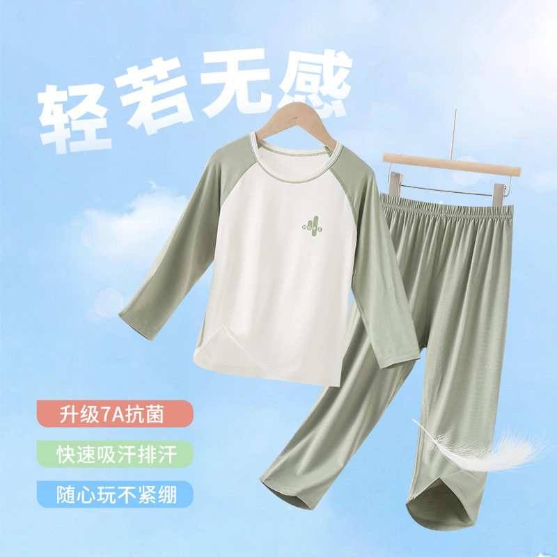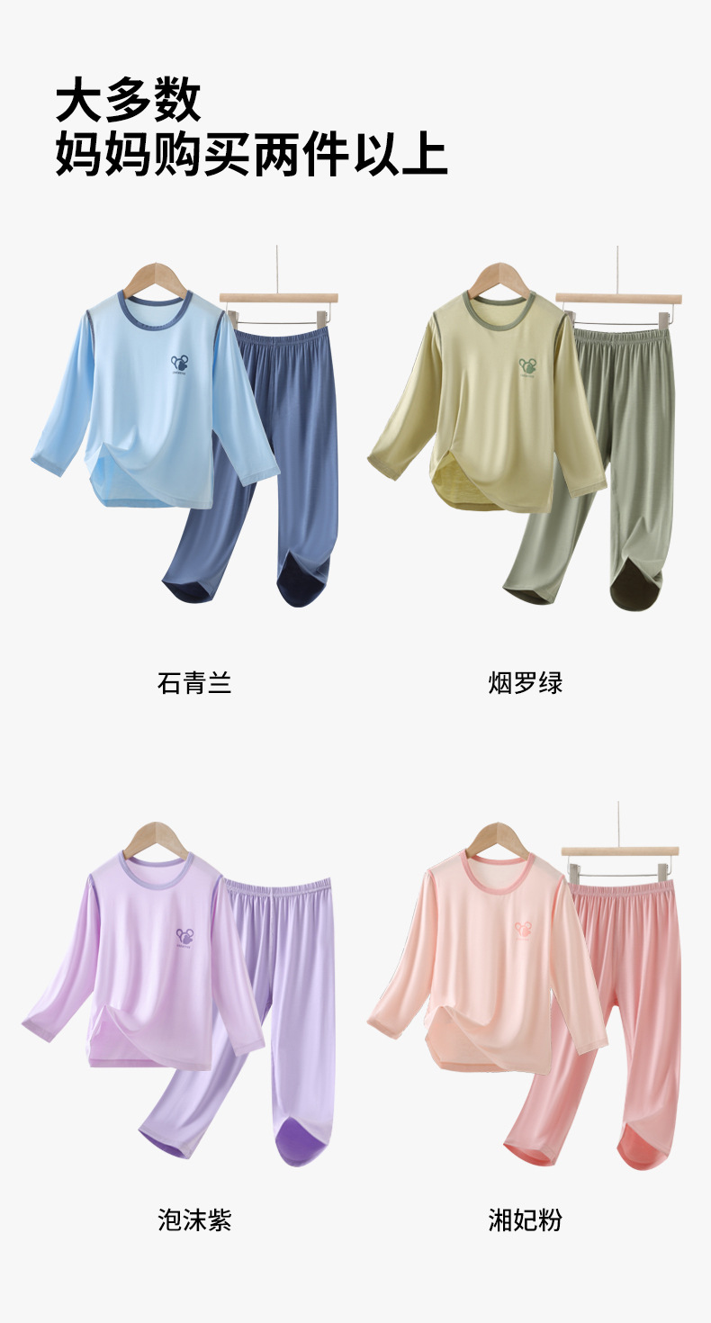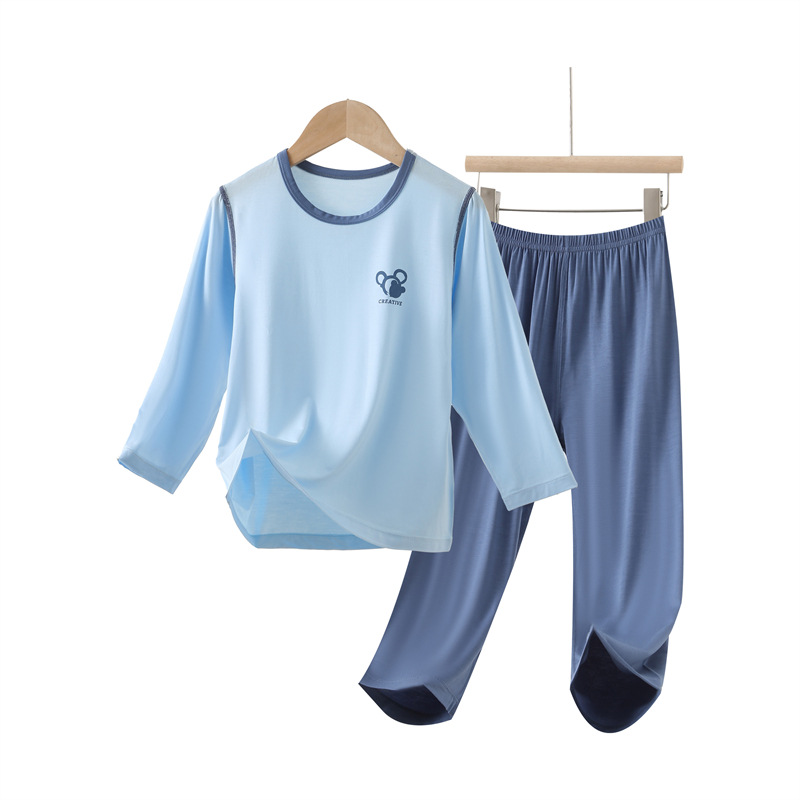 어린이 홈 옷 크루 넥베이스 속옷 세트 큰 소년 소녀 가을 옷 가을 바지 7A 항균 에어컨 옷 잠옷
