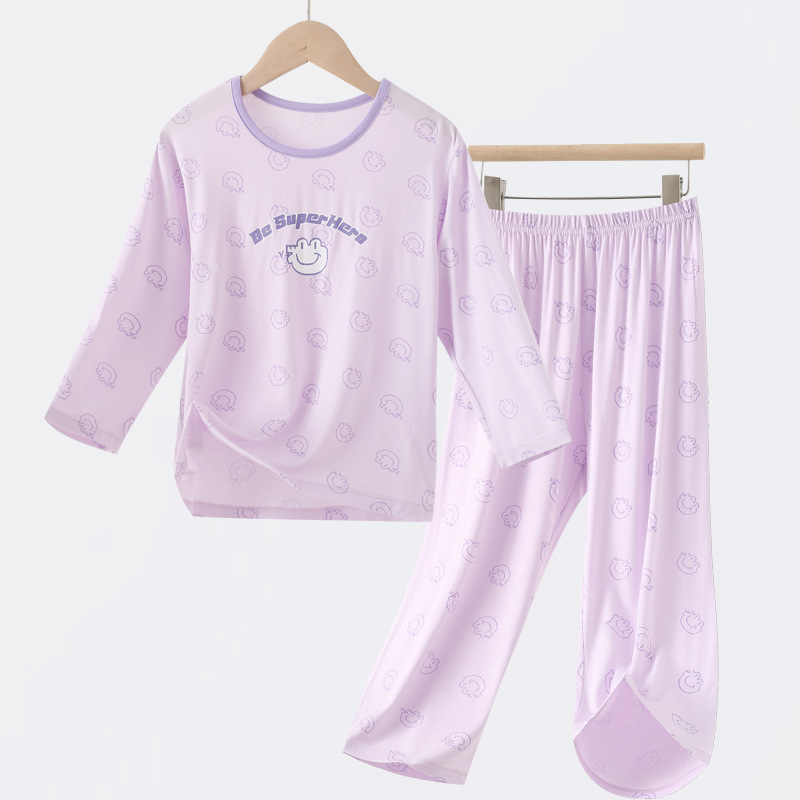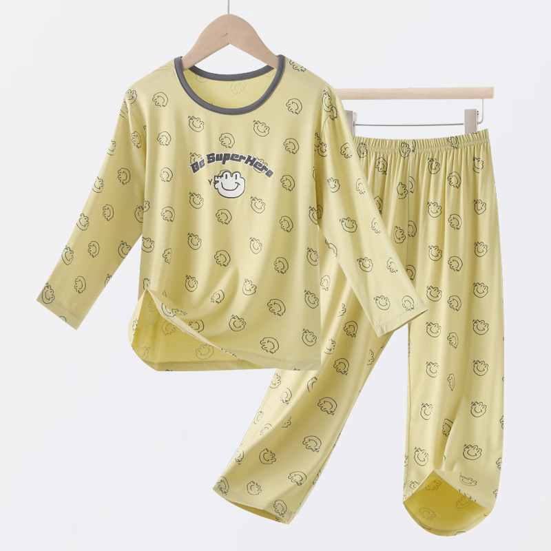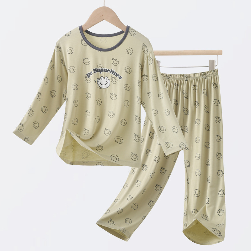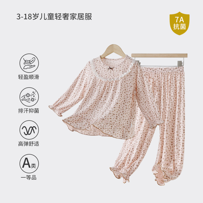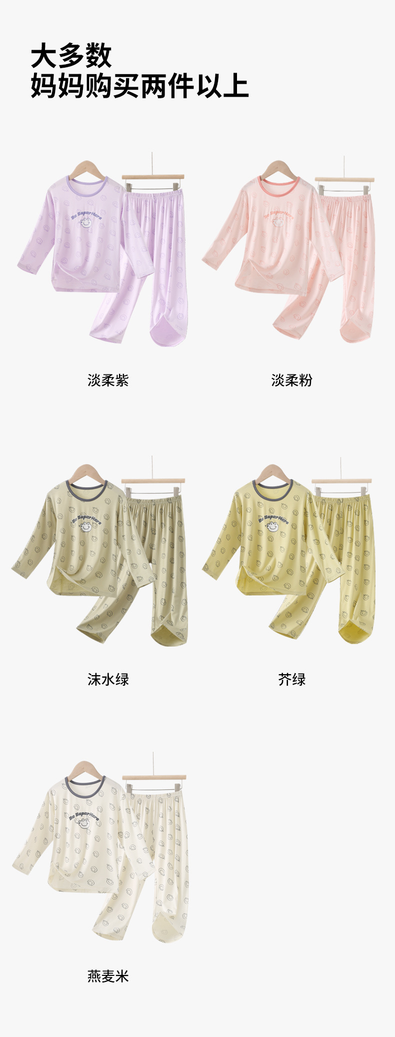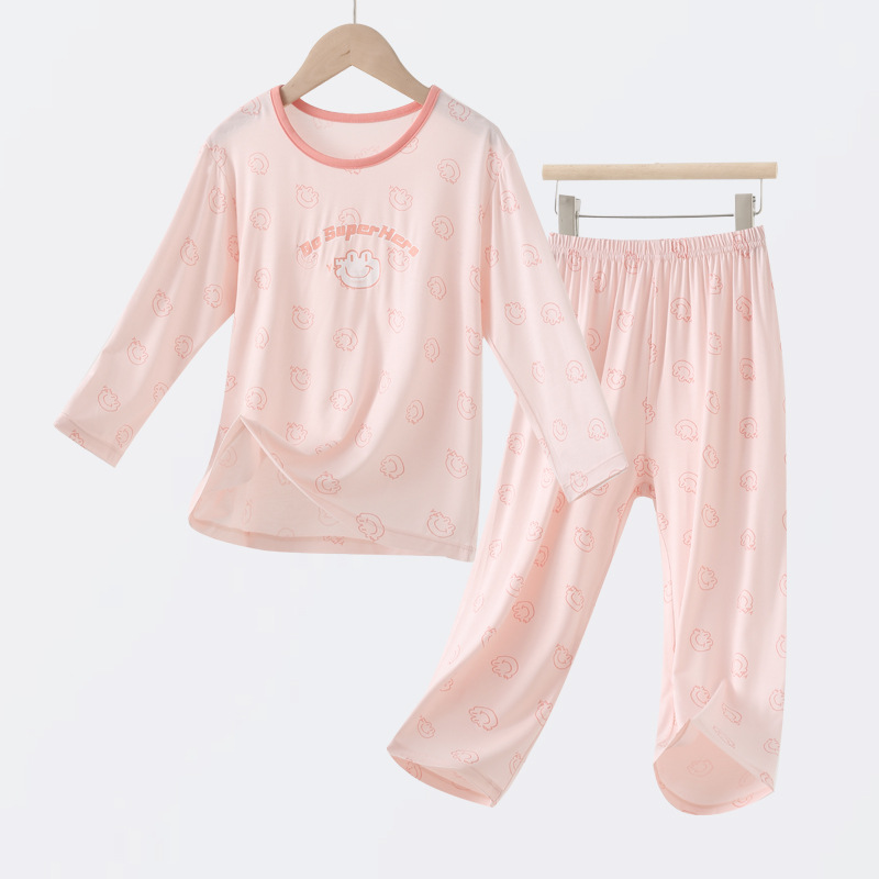 어린이 홈 옷 크루 넥베이스 속옷 세트 큰 소년 소녀 가을 옷 가을 바지 7A 항균 에어컨 옷 잠옷