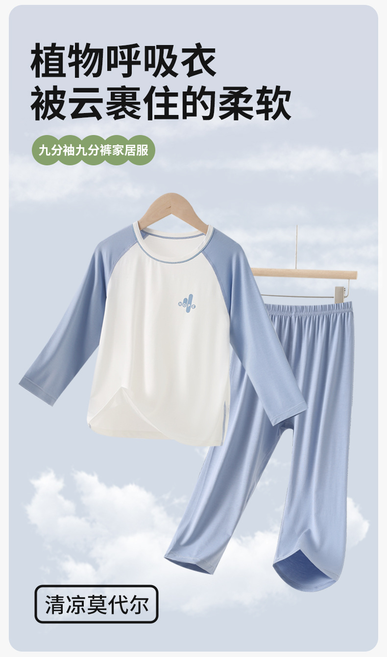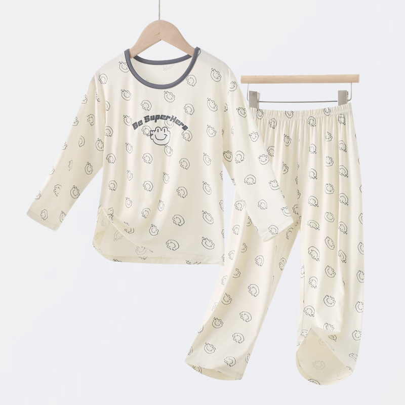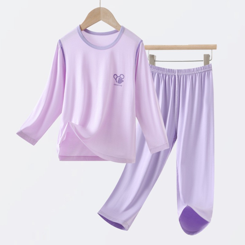 어린이 홈 옷 크루 넥베이스 속옷 세트 큰 소년 소녀 가을 옷 가을 바지 7A 항균 에어컨 옷 잠옷스토어 가기