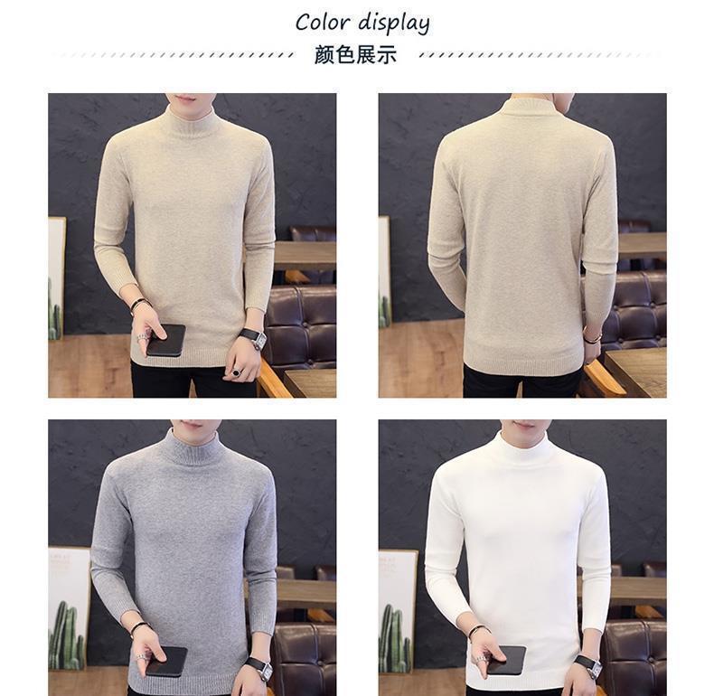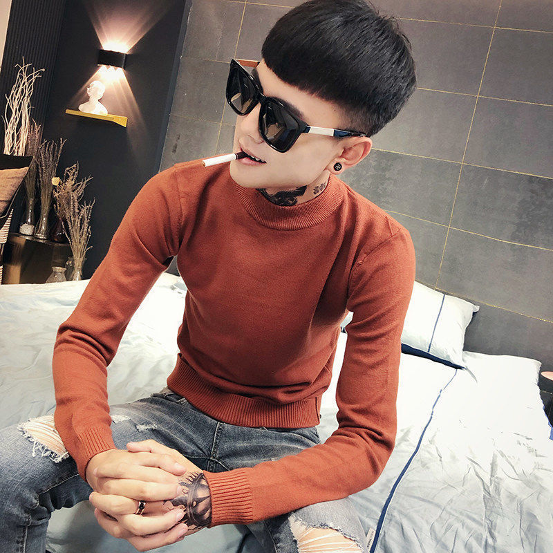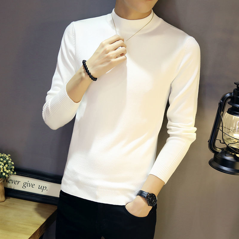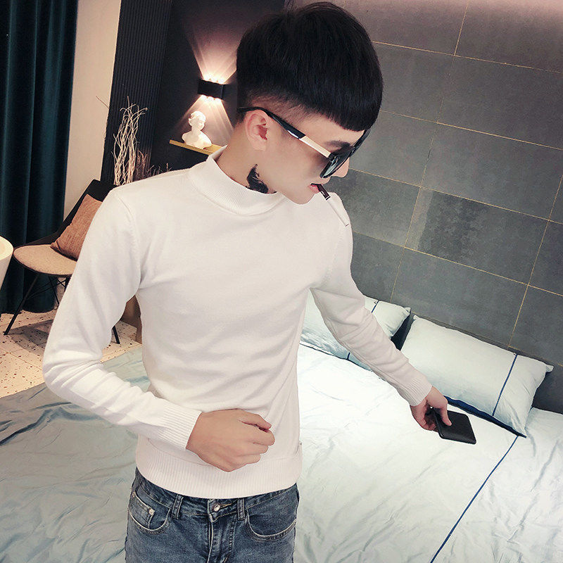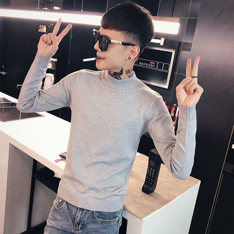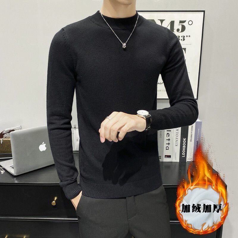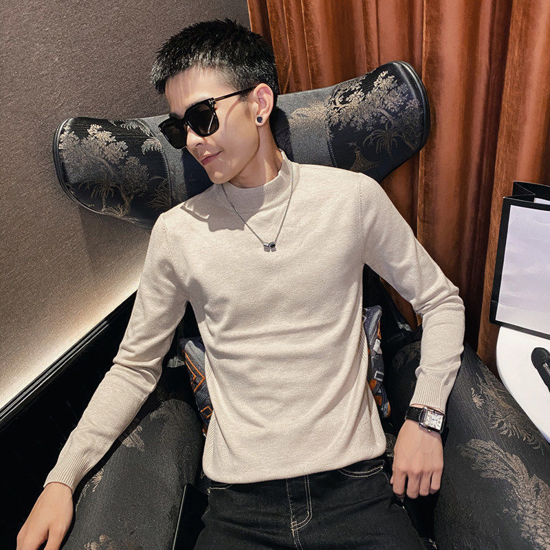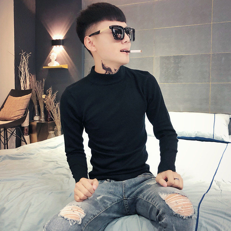 트렌디 한 브랜드 반 터틀넥 스웨터 남성용 슬림 핏 가을과 겨울 새로운 한국 스타일 트렌디 라운드 넥 긴팔 솔리드 컬러 니트베이스 셔츠