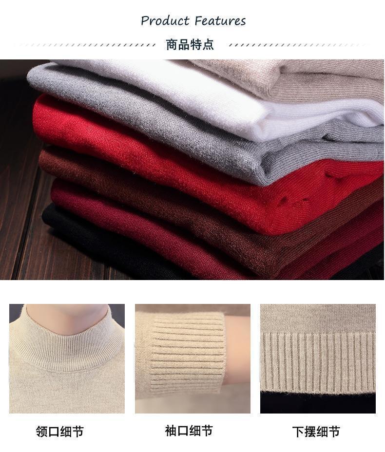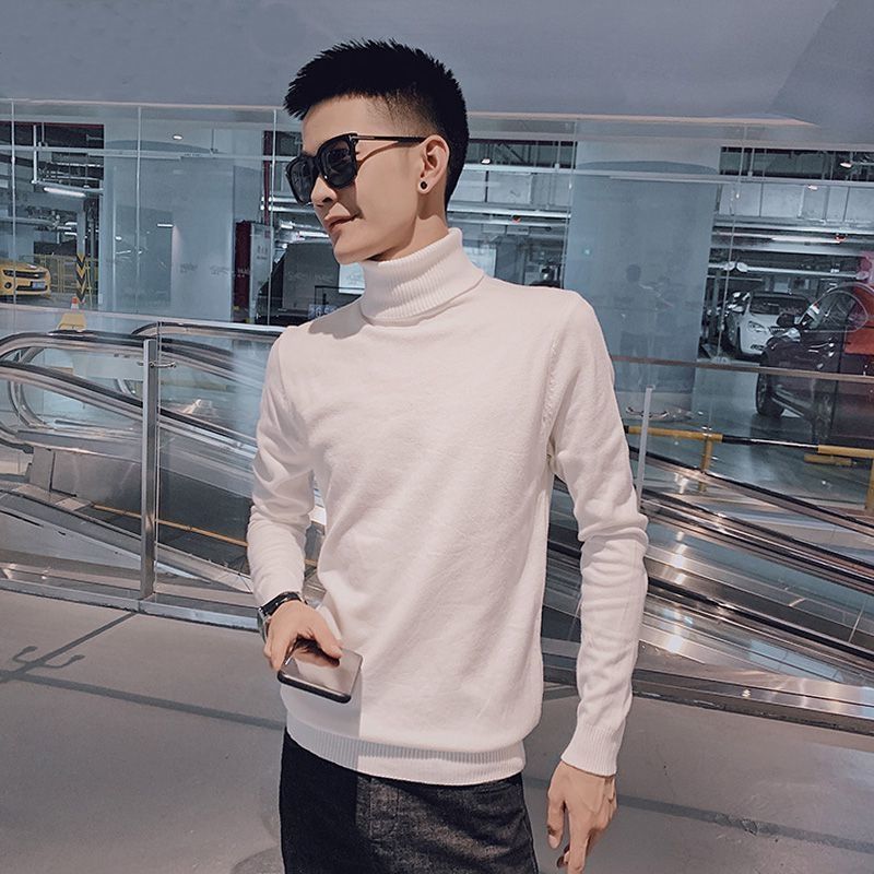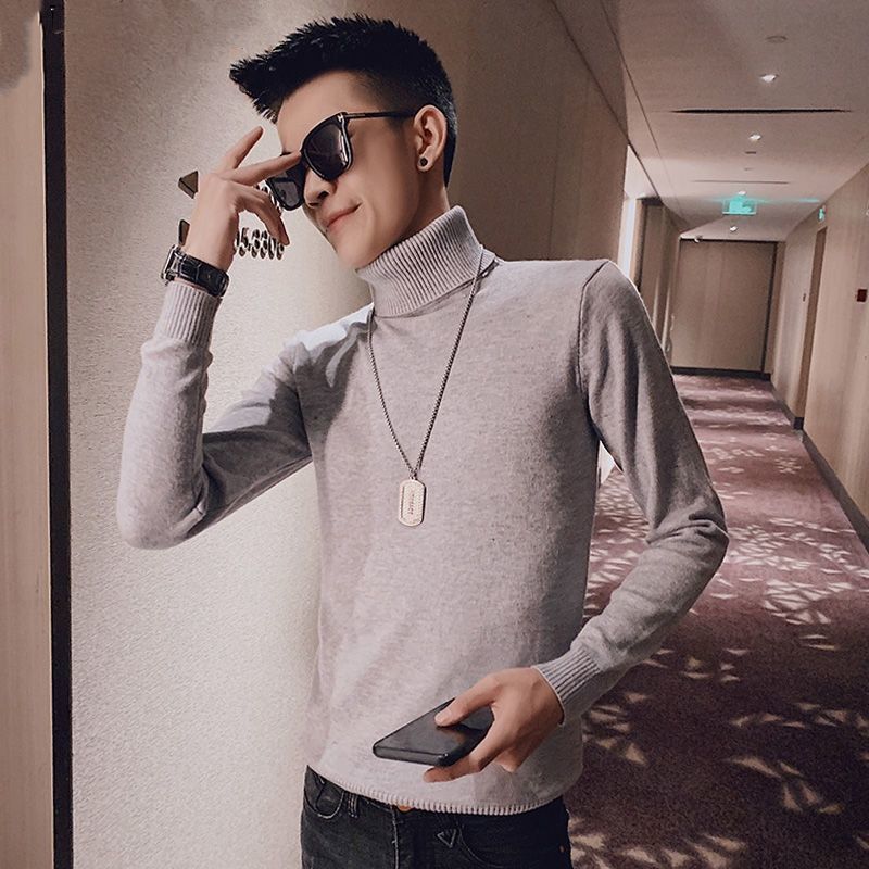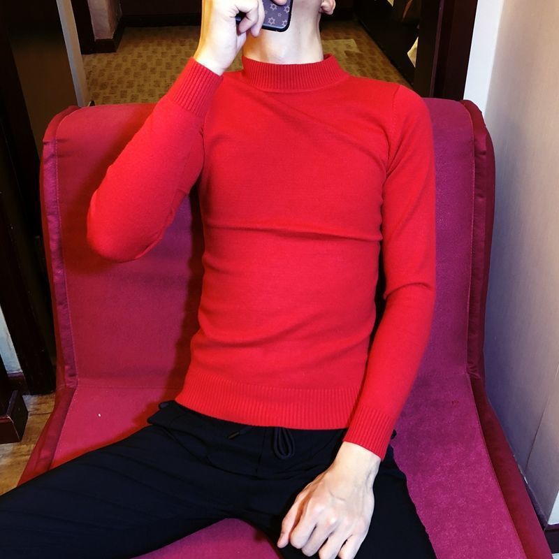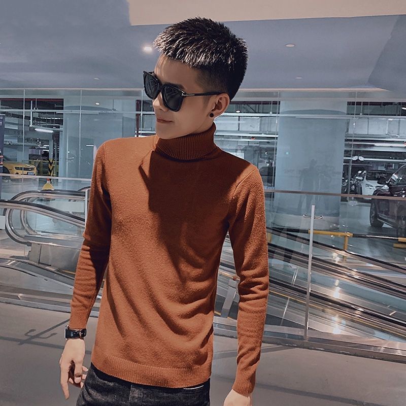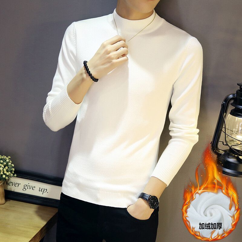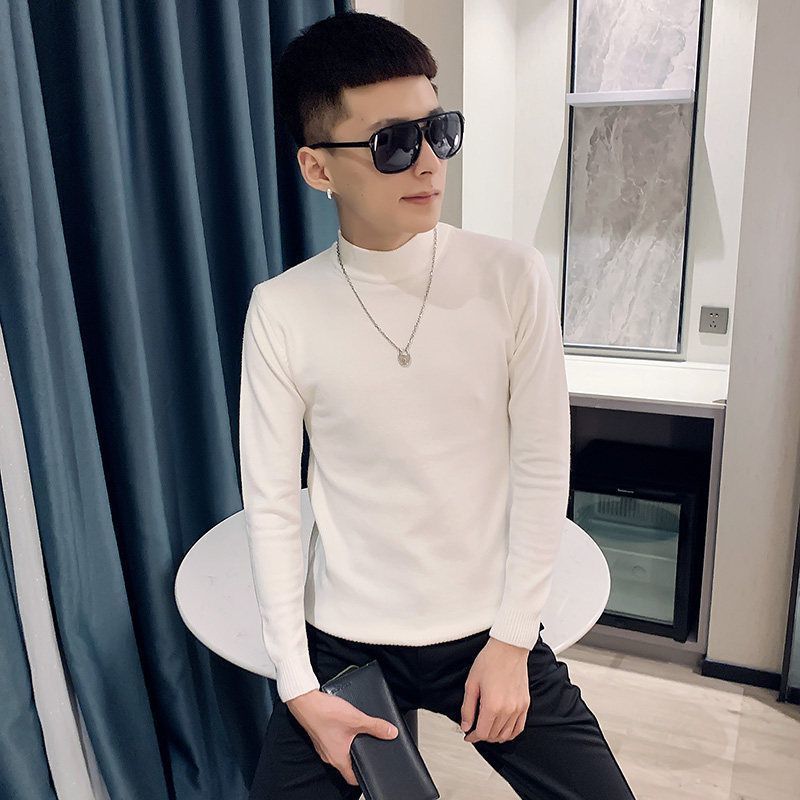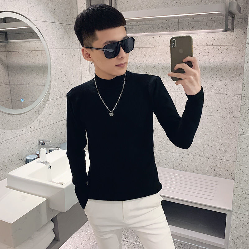 트렌디 한 브랜드 반 터틀넥 스웨터 남성용 슬림 핏 가을과 겨울 새로운 한국 스타일 트렌디 라운드 넥 긴팔 솔리드 컬러 니트베이스 셔츠