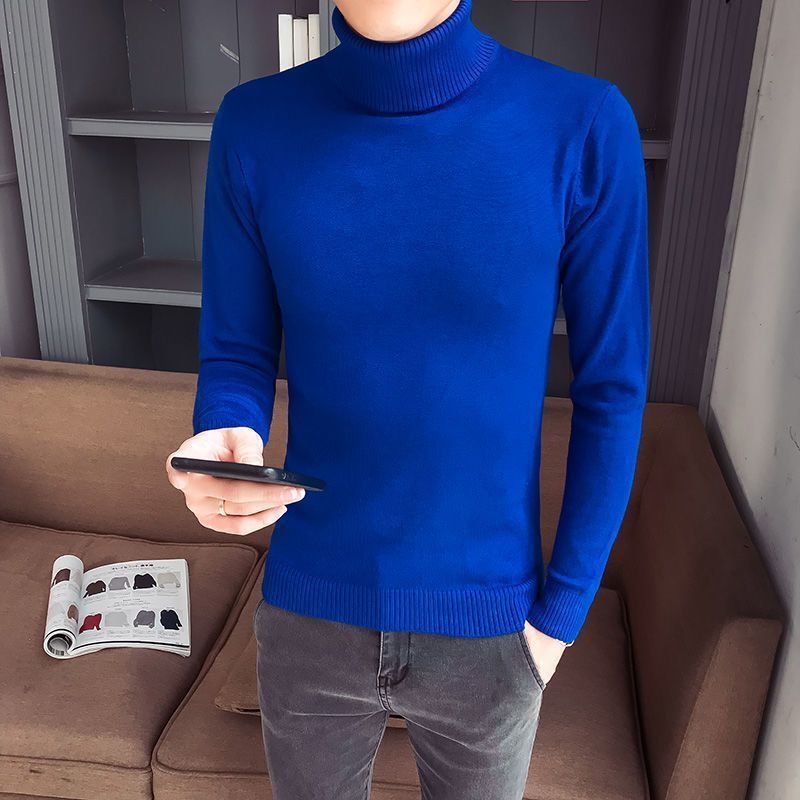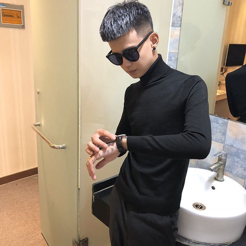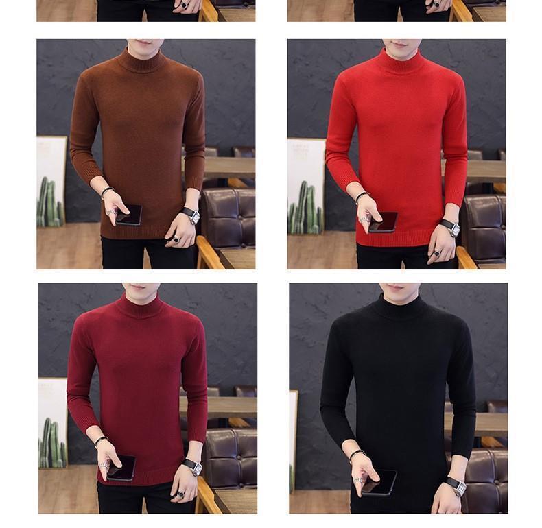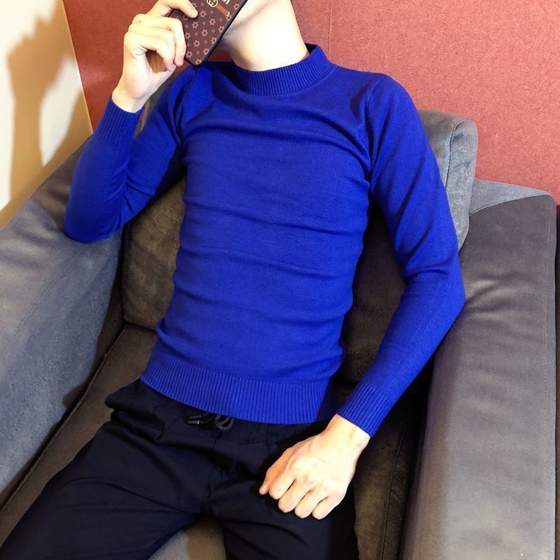 트렌디 한 브랜드 반 터틀넥 스웨터 남성용 슬림 핏 가을과 겨울 새로운 한국 스타일 트렌디 라운드 넥 긴팔 솔리드 컬러 니트베이스 셔츠스토어 가기