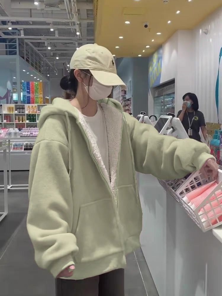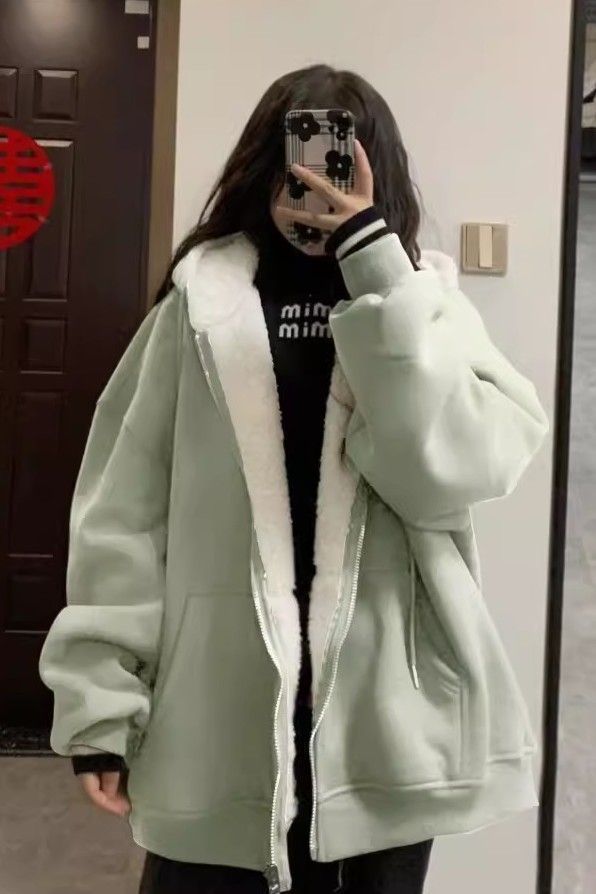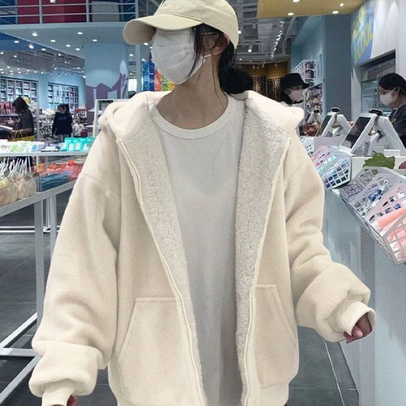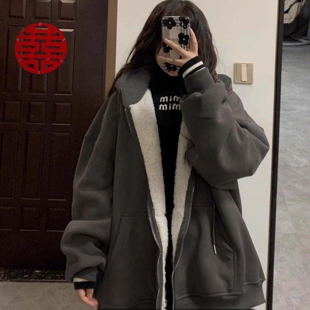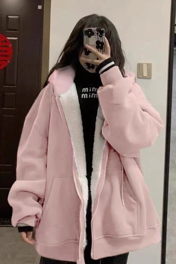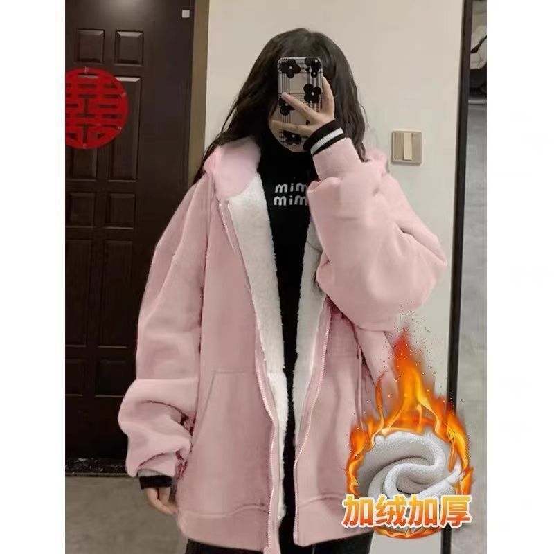 기모 스웨트 코트 여성 가을과 겨울 슈퍼 두꺼운 겨울 새 겨울 두꺼운 핑크 양고기 플러시 코튼 패딩 재킷 어깨스토어 가기