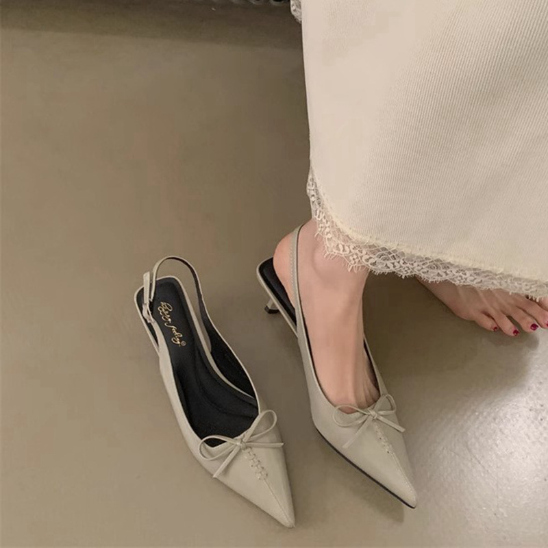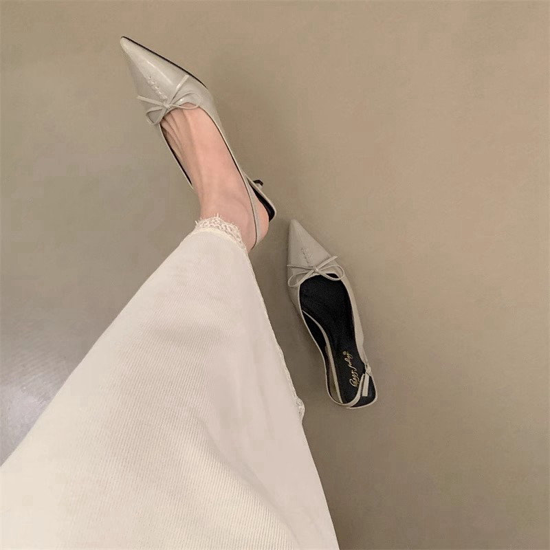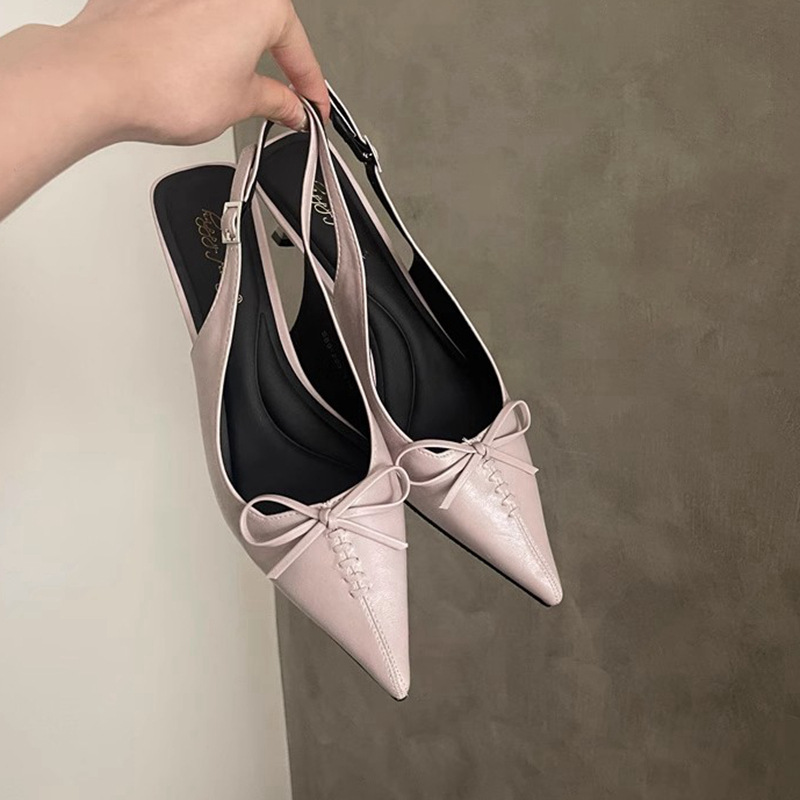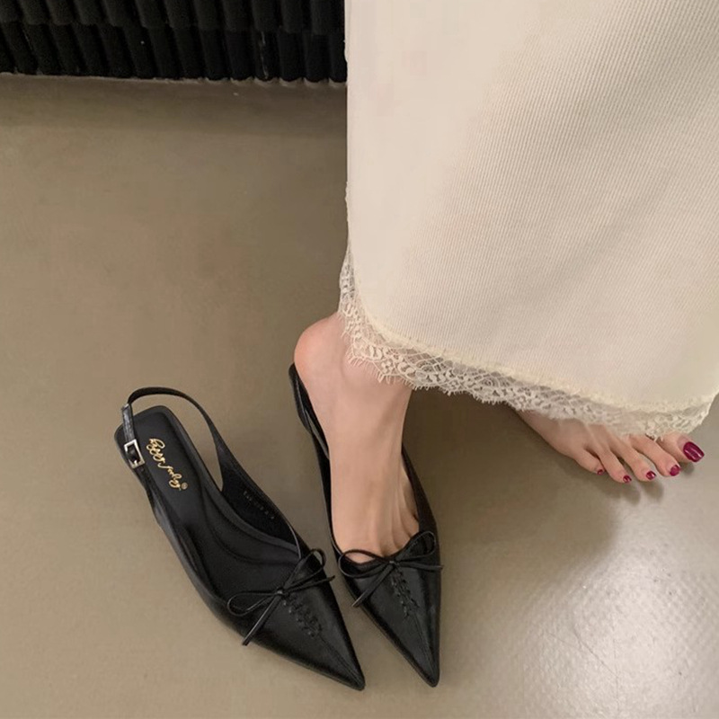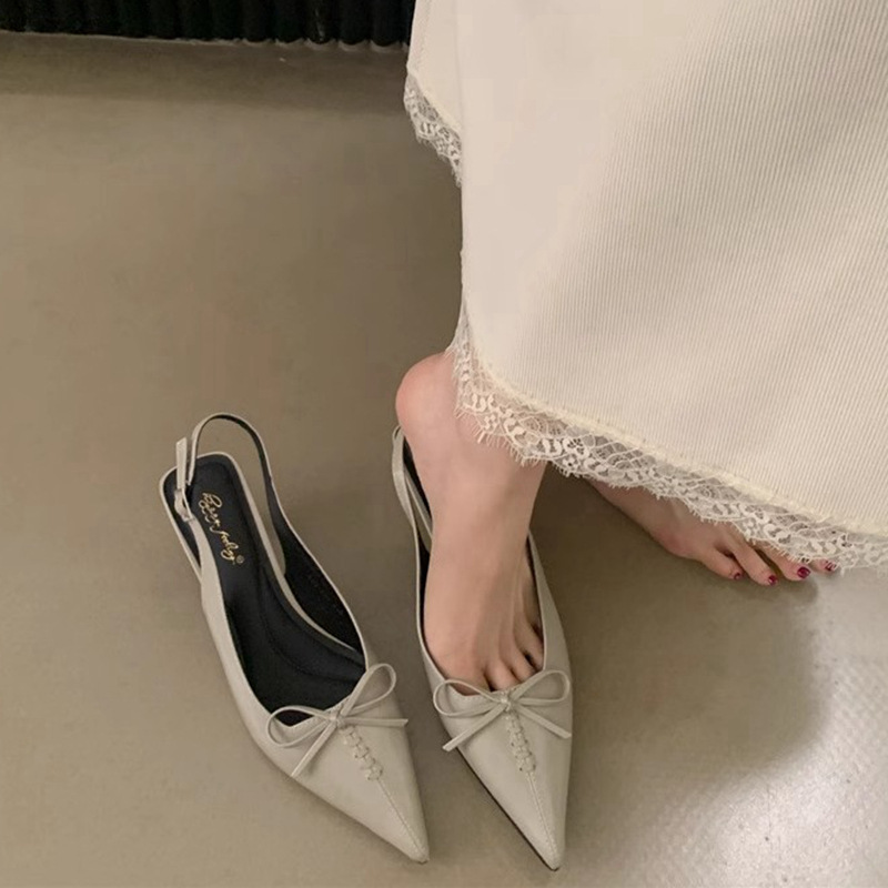 프랑스 뾰족한 우아한 스틸레토 힐 여성 2025 년 새로운 젠틀 보우 후면 빈 샌들 페어리 슬립 온스토어 가기