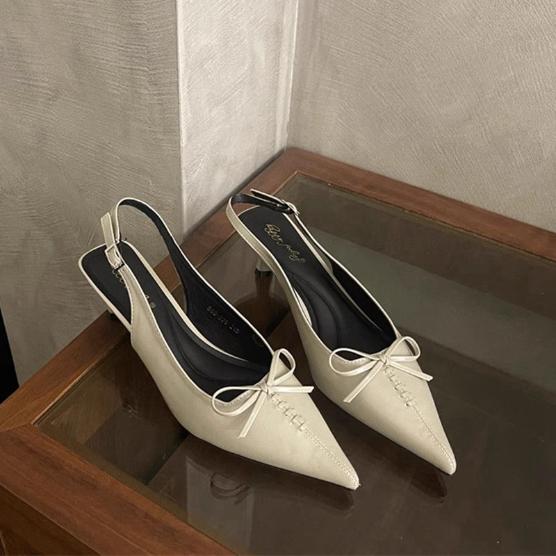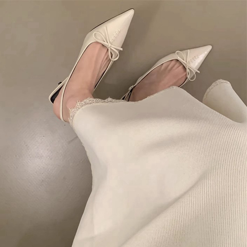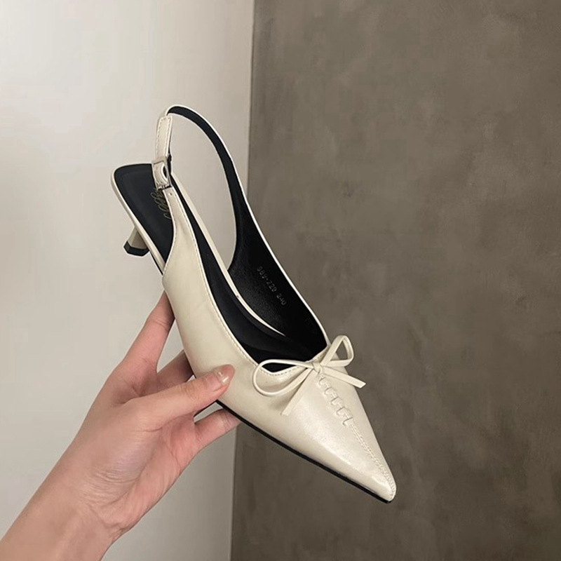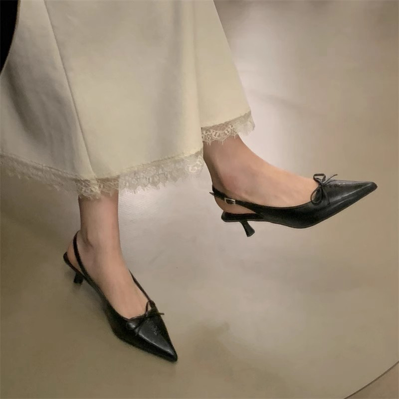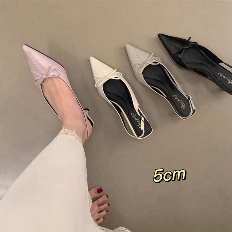 프랑스 뾰족한 우아한 스틸레토 힐 여성 2025 년 새로운 젠틀 보우 후면 빈 샌들 페어리 슬립 온스토어 가기