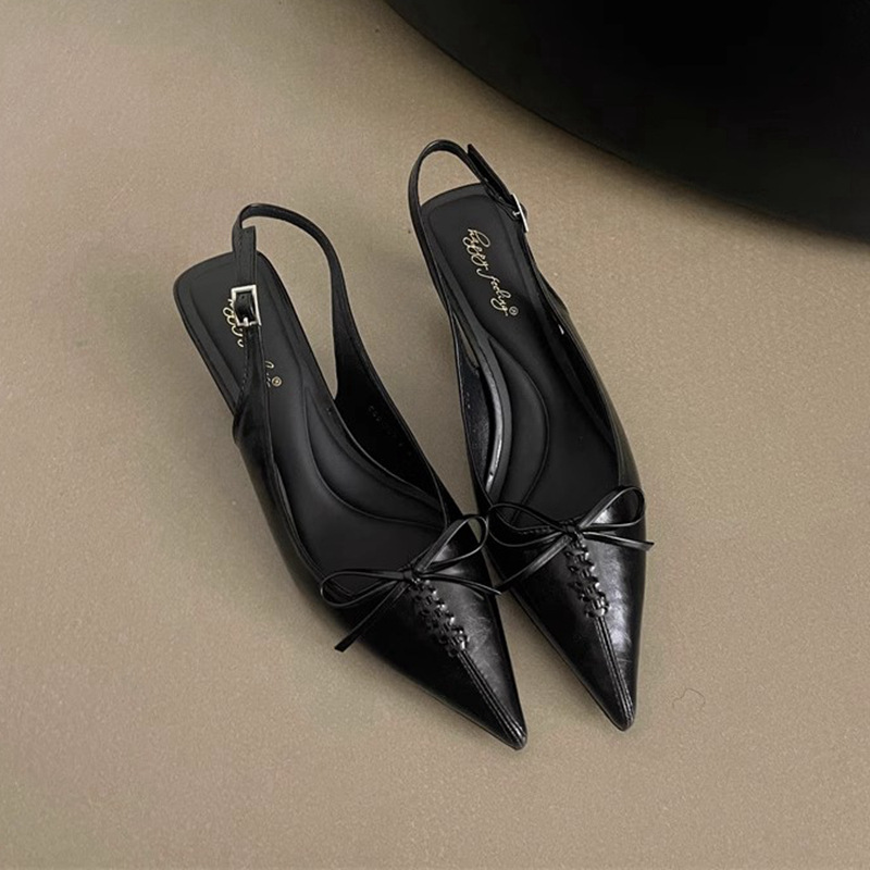 프랑스 뾰족한 우아한 스틸레토 힐 여성 2025 년 새로운 젠틀 보우 후면 빈 샌들 페어리 슬립 온