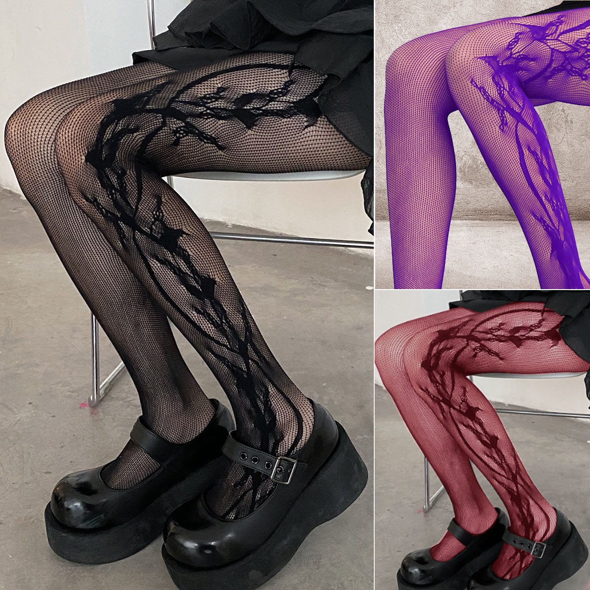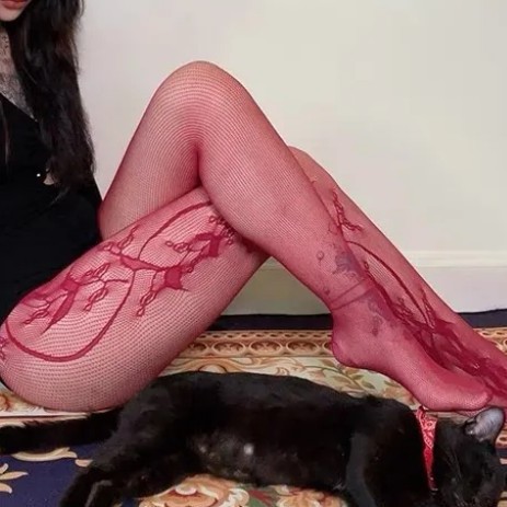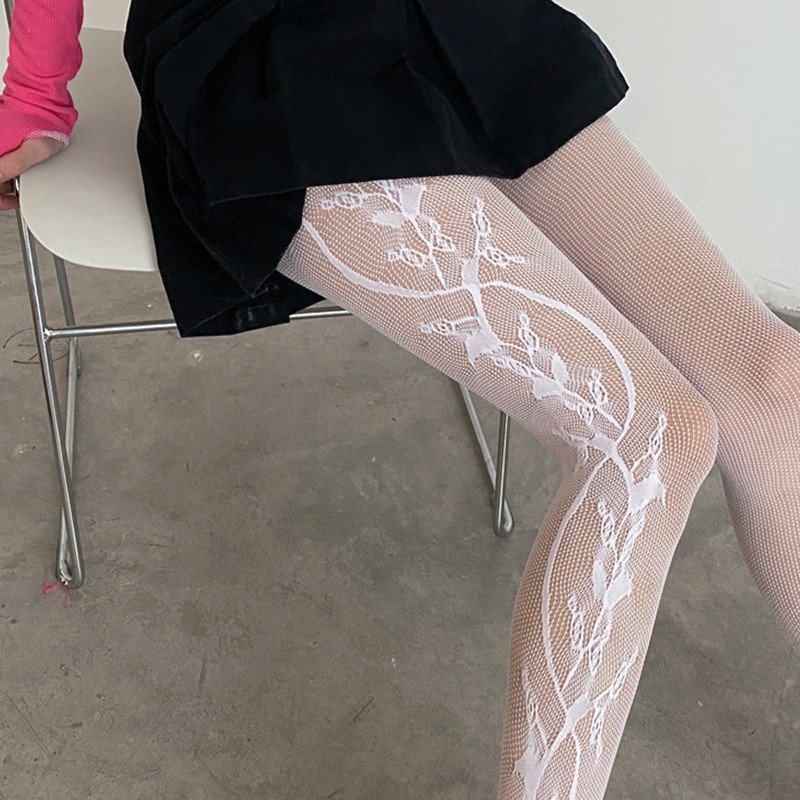 Fishnet 스타킹 봄과 가을 사이버 인기 비대칭 패턴 블랙 섹시 할로우 트렌디 긴 튜브 레깅스 얇은 스타킹스토어 가기