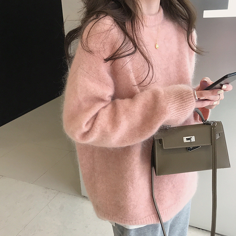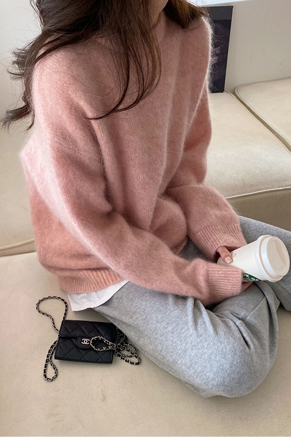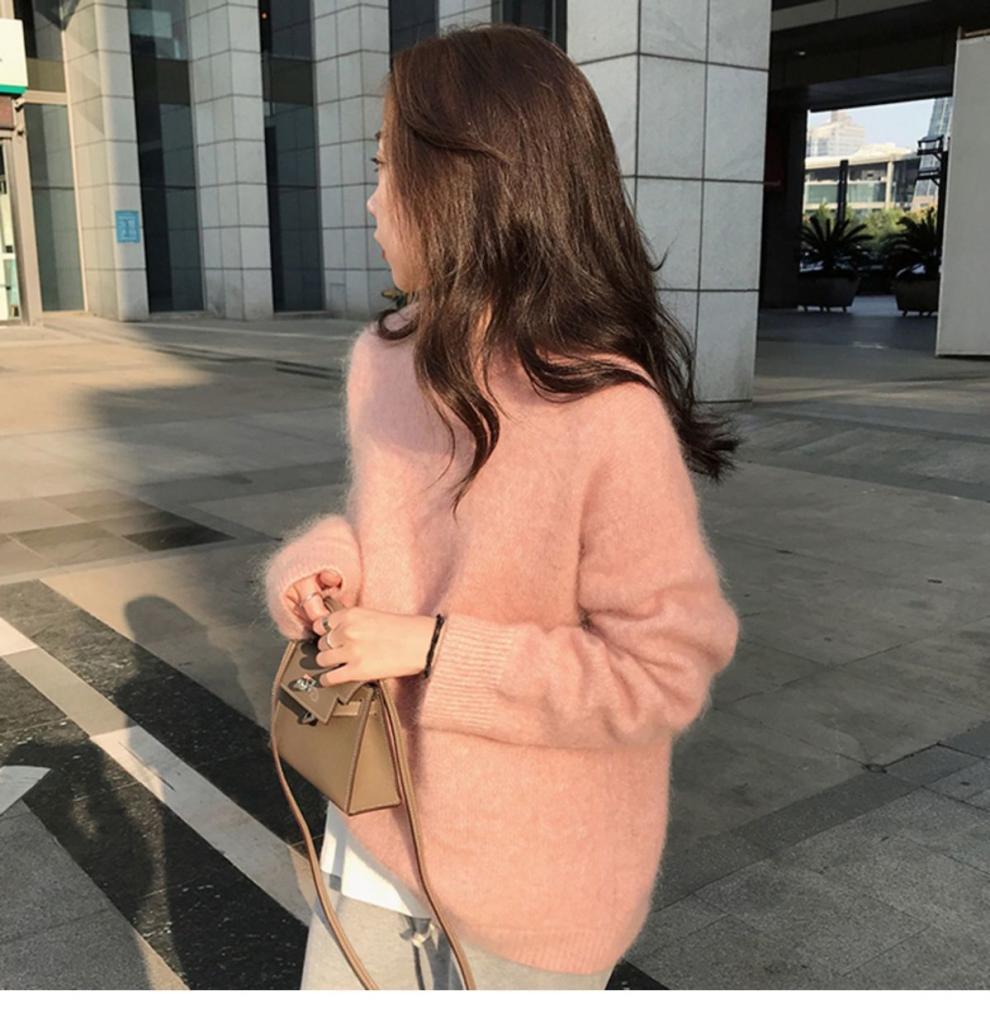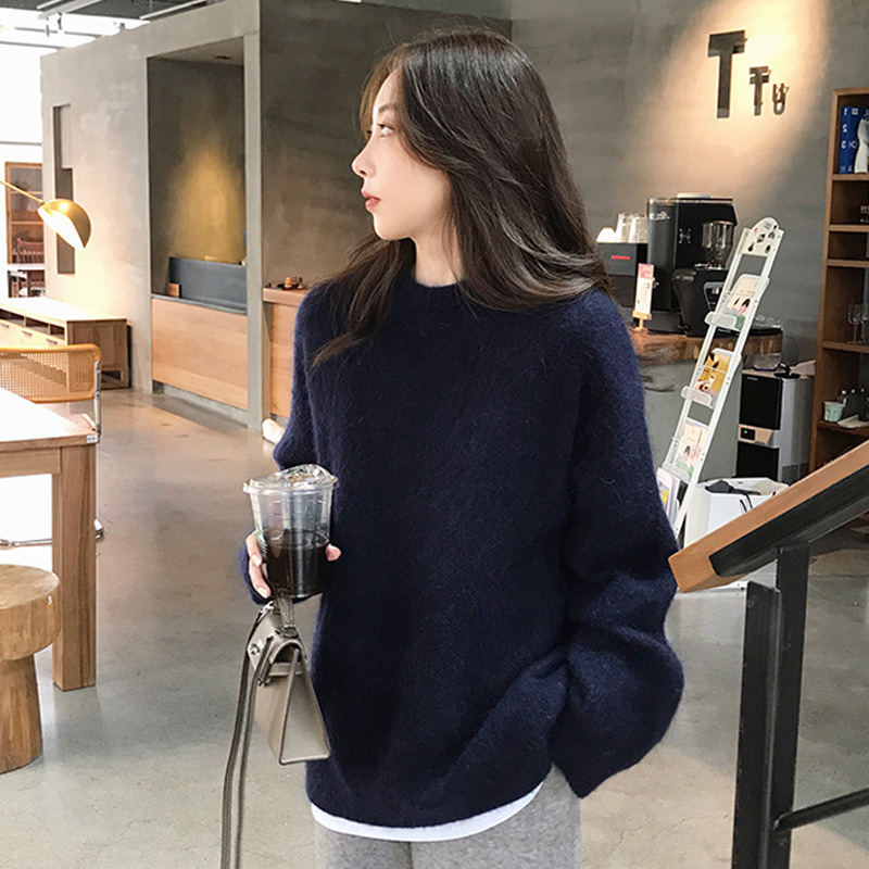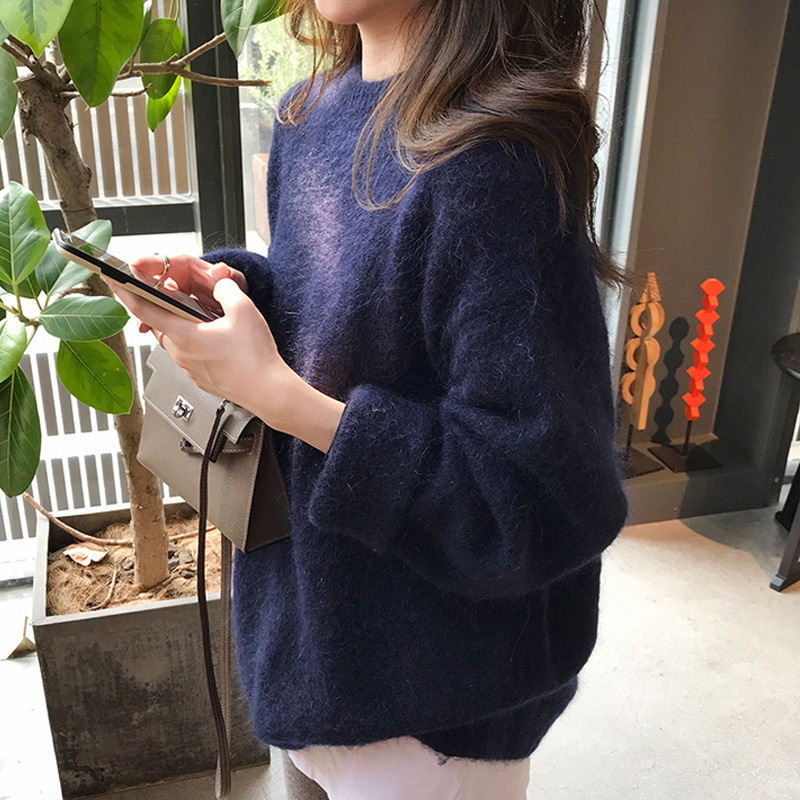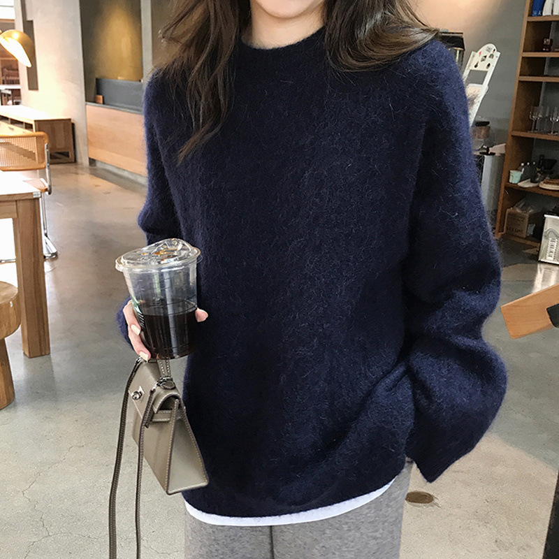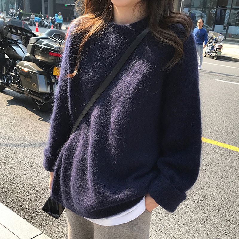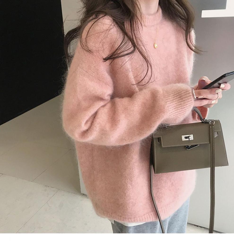 2024 년 가을과 겨울 새로운 모리 젠틀 게으른 스타일 니트 탑 모조 밍크 벨벳 부드러운 왁스 모방 마헤어 스웨터스토어 가기